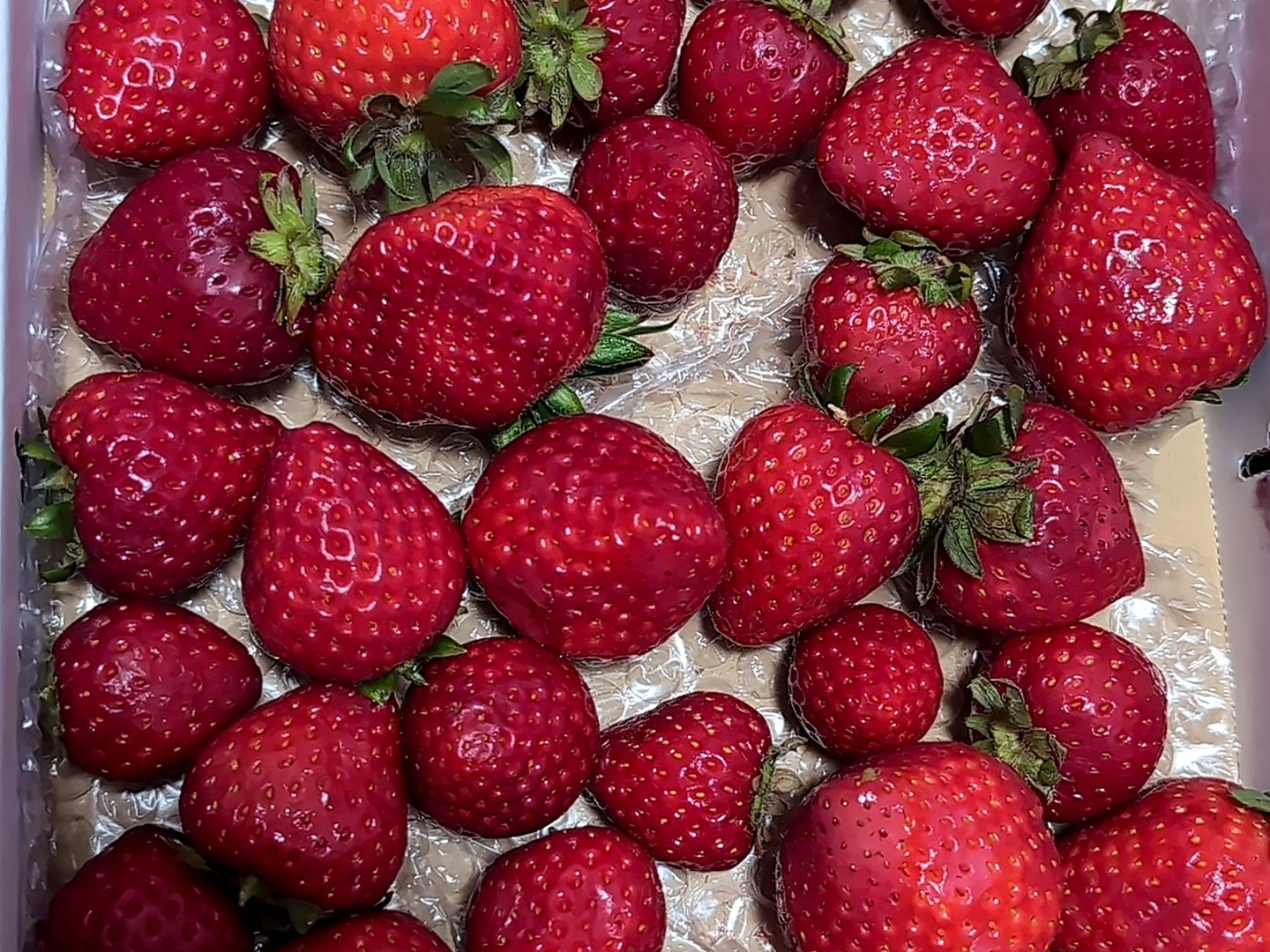 規格外で小さい、収穫中に出来た傷、過熟、奇形ないちごが入ります