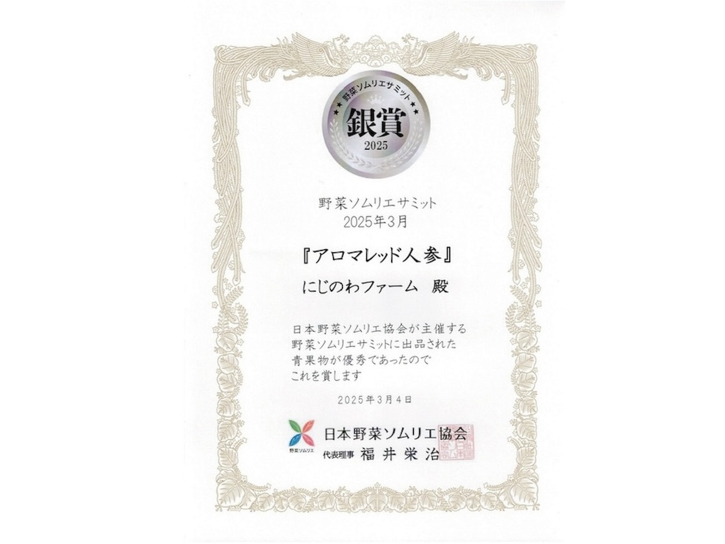 野菜ソムリエに「自信を持っておすすめする味」と認められました(2025年3月)