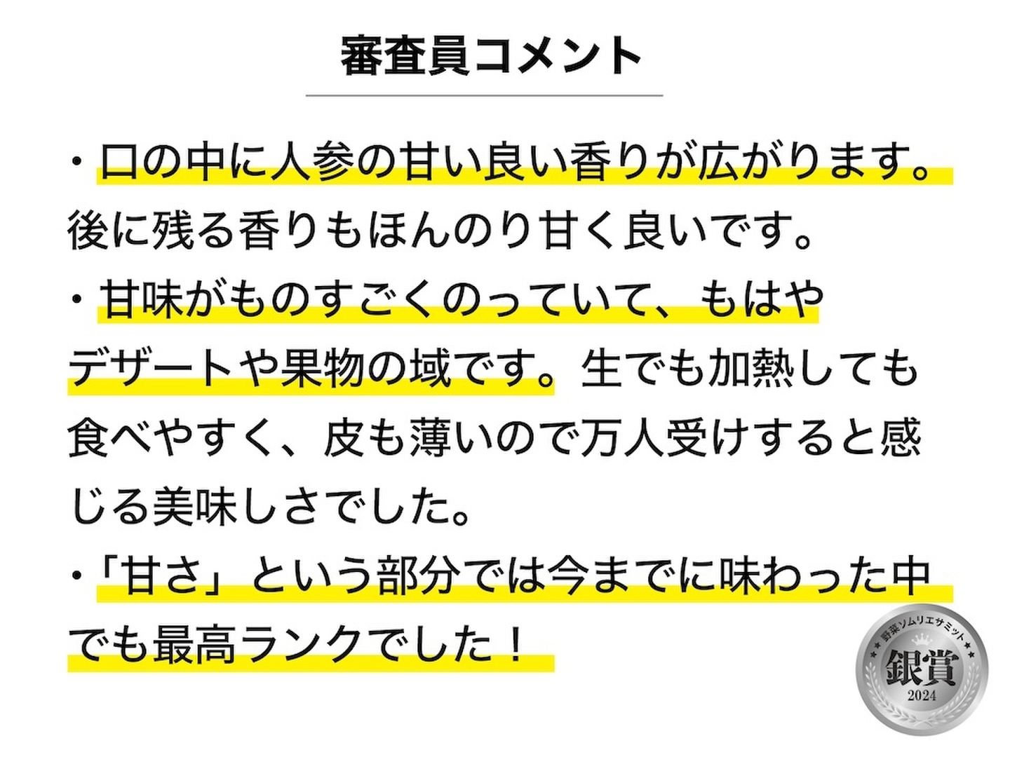 ●味の品評会「野菜ソムリエサミット」で『銀賞』を受賞!