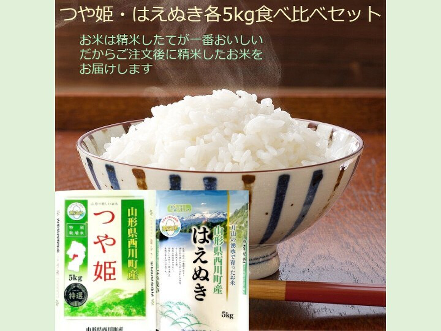 つや姫+はえぬき5㎏ⅹ各1袋 食べ比べセット 特別栽培米 無洗米 令和6年山形産