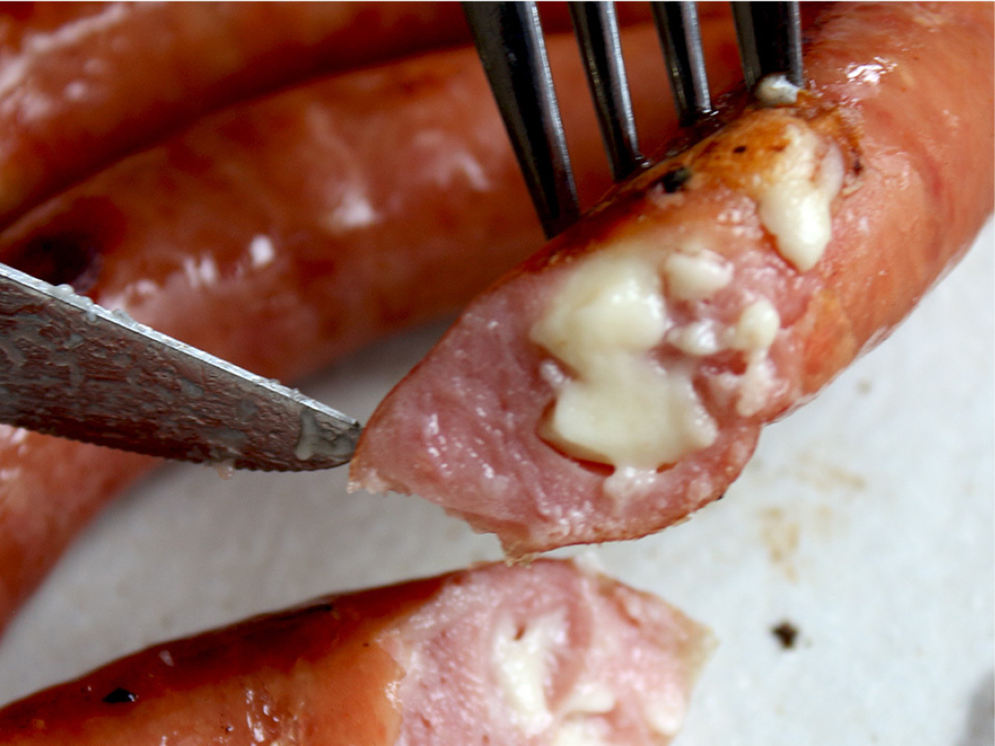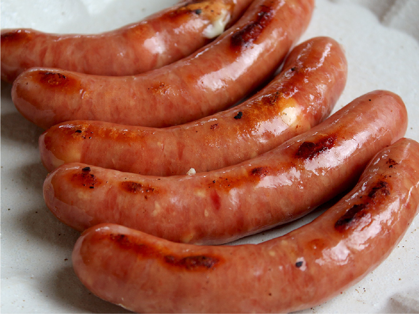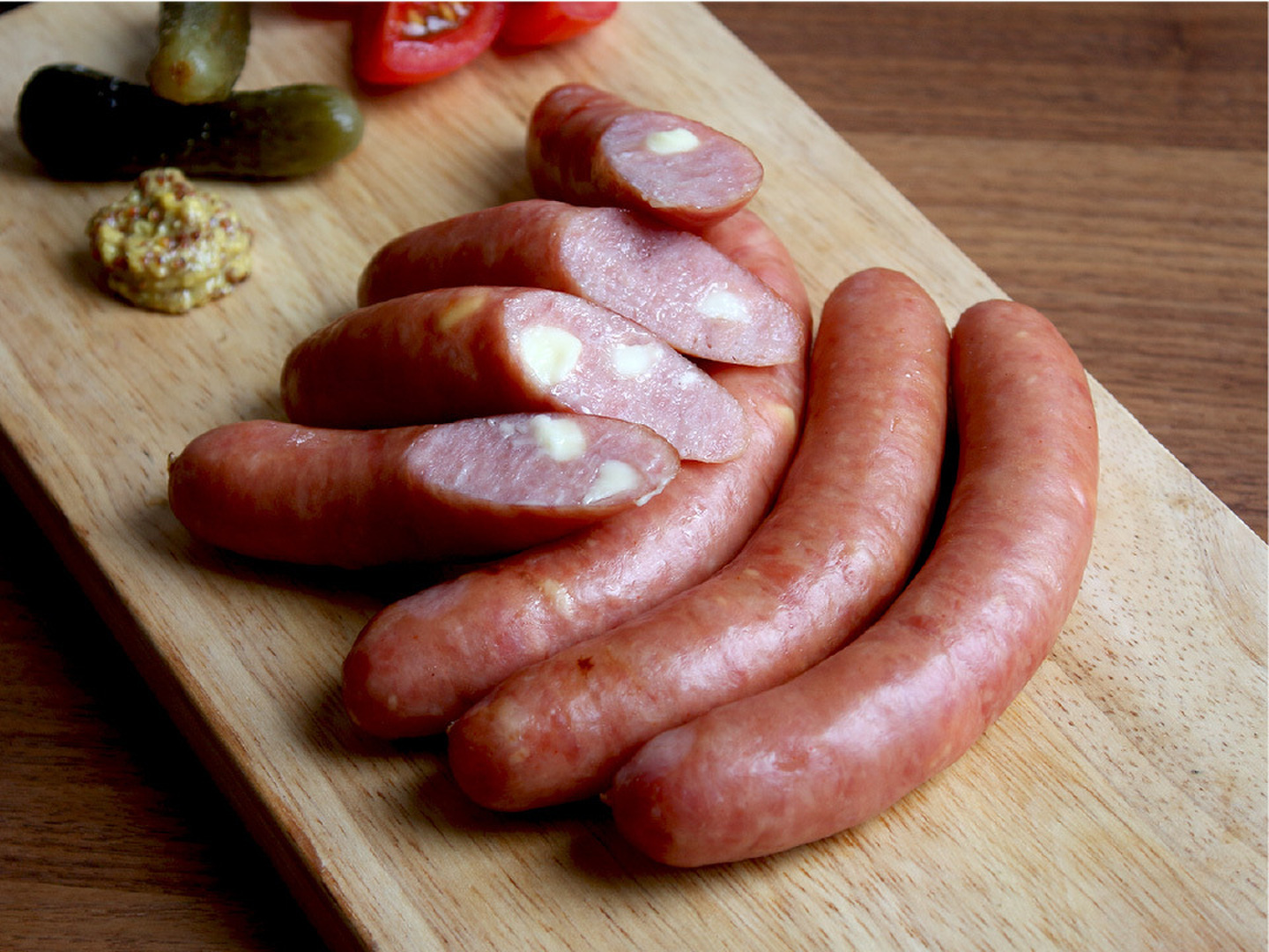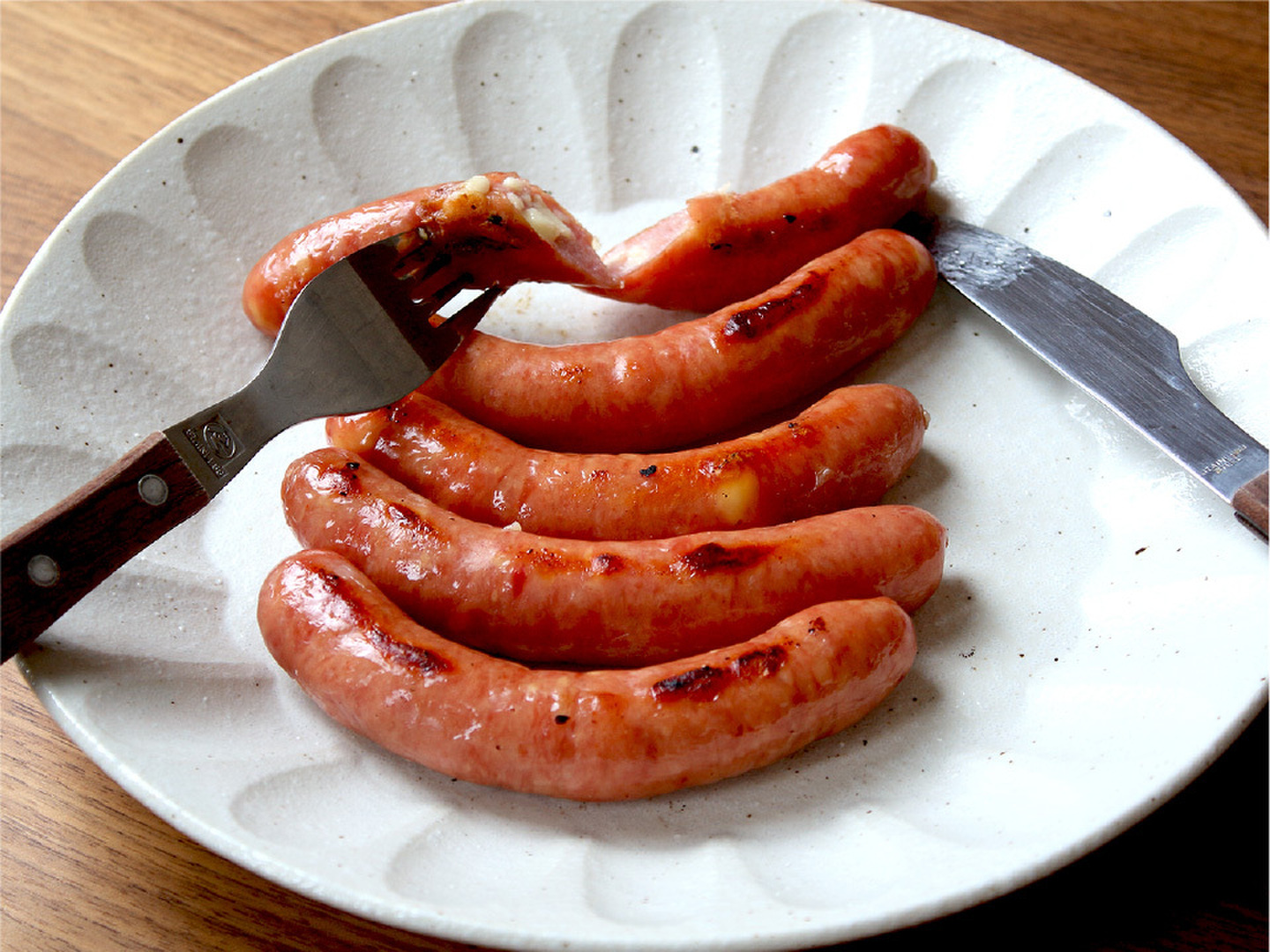 - 豚脂肪を後から加えずに作ったこだわりのソーセージ。