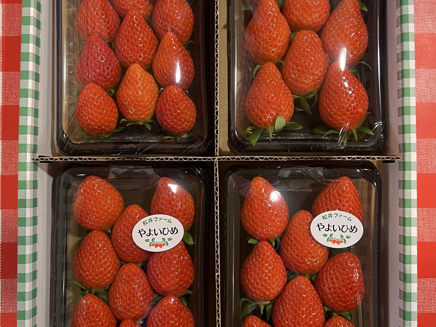 「やよいひめ」は“大きい粒”と“上品な薄紅色”が特徴の品種です。果肉はしっかりとしていて、中まで薄い赤色をしています。甘みと酸味のバランスがよく日持ちもするため、配送に適したいちごです。お届けするいちごは小粒のものになります。