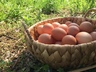 「あめつちたまご」は、広い野原で伸び伸びとストレスなく暮らし、生きた草、種、草木の腐食、虫たちなど自然にあるものを食べて育ったニワトリの卵です。