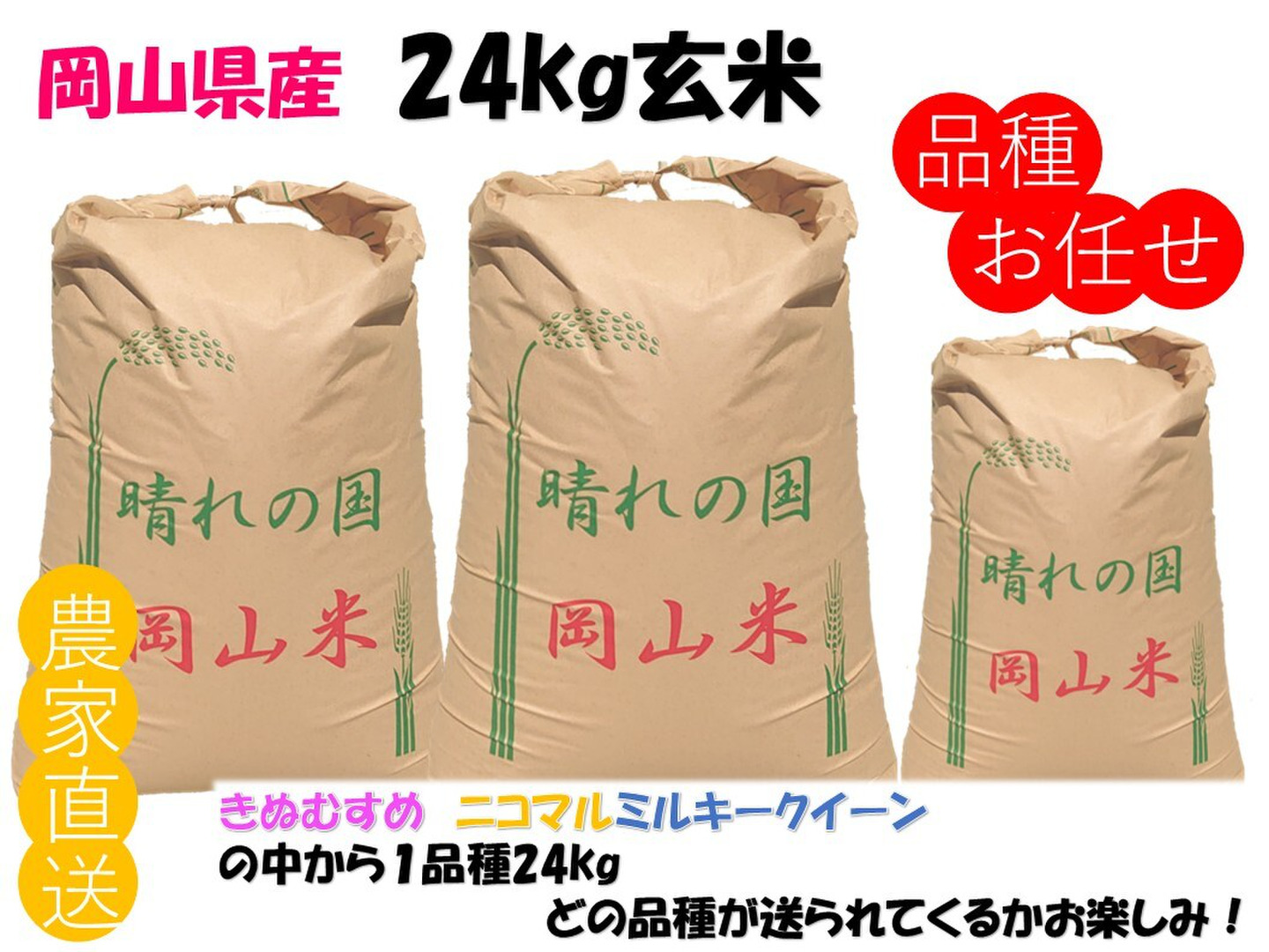 品種お任せ「ミルキークイーンorにこまるorきぬむすめ」岡山県産 玄米 24kg