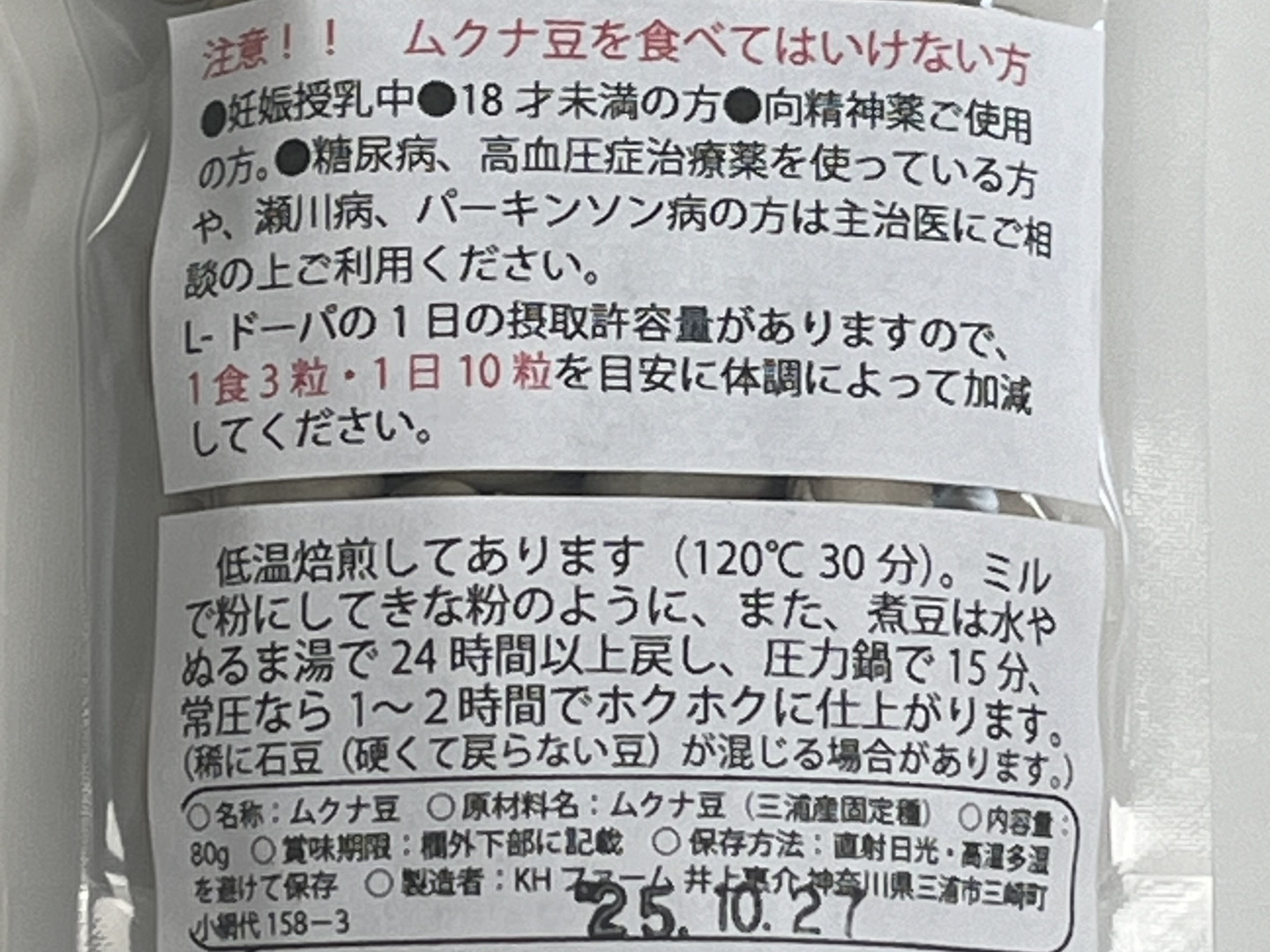 ご注意;ムクナ豆を食べてはいけない方