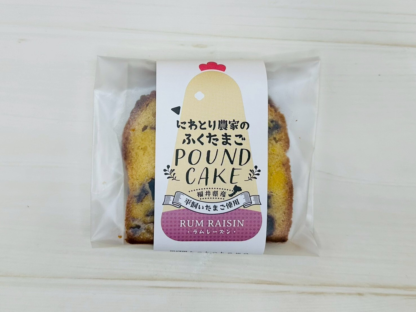 【原材料】パウンドケーキ(ラムレーズン):鶏卵(福井県産)、グラニュー糖、レーズン、小麦粉、