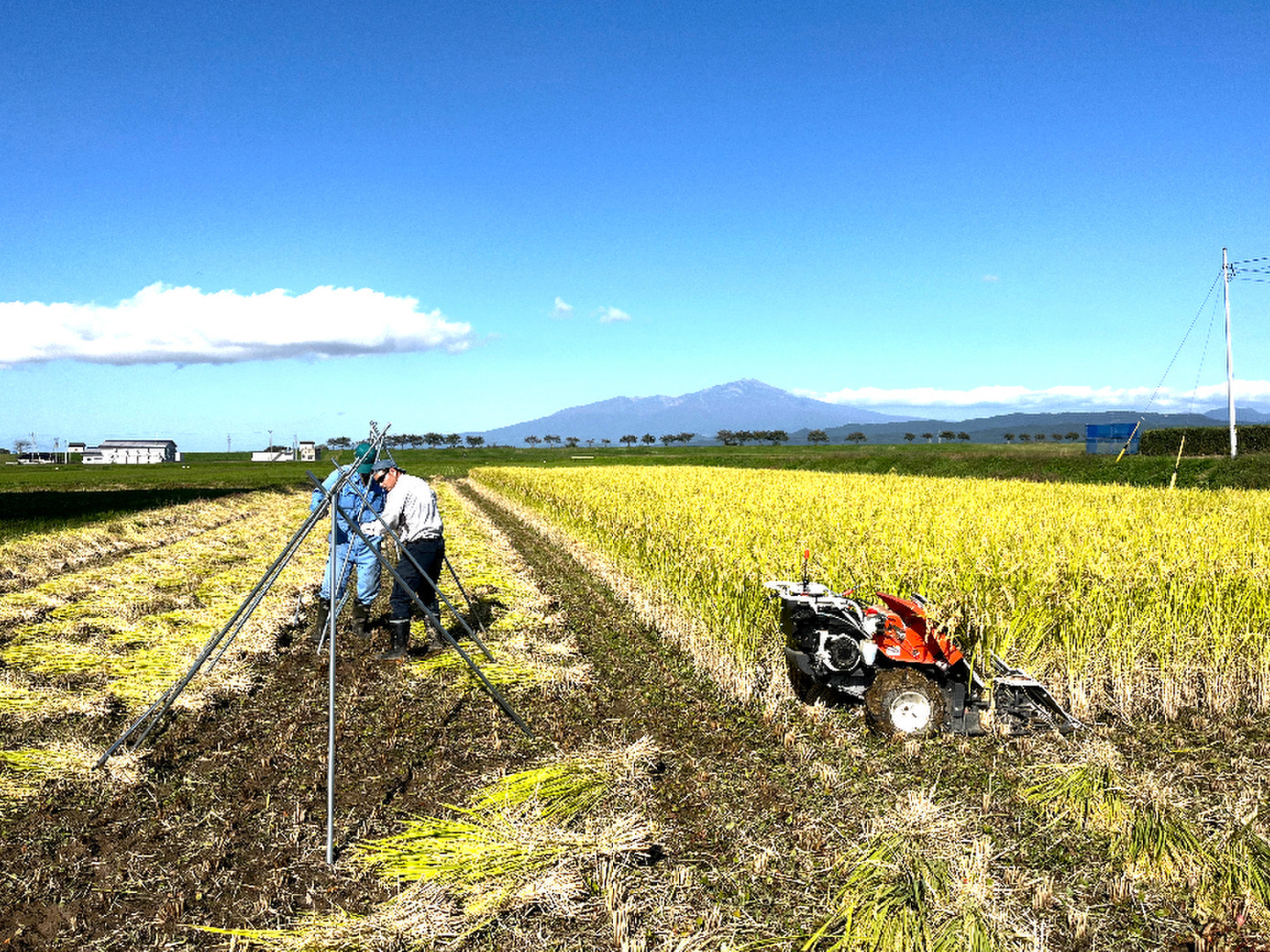 バインダー刈りはさ掛け天日干し