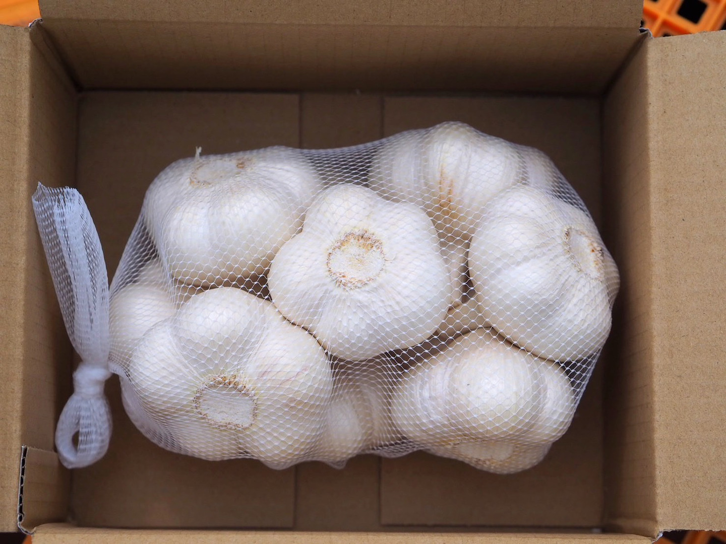 常温で保存する場合は、ネットににんにくを詰めて、直射日光の当たらない涼しい場所で保存してください。適切に乾燥させると数か月は日持ちしますが、温度や湿度条件によっては発芽したりカビが発生する場合もございますので、自己責任でお願いいたします。