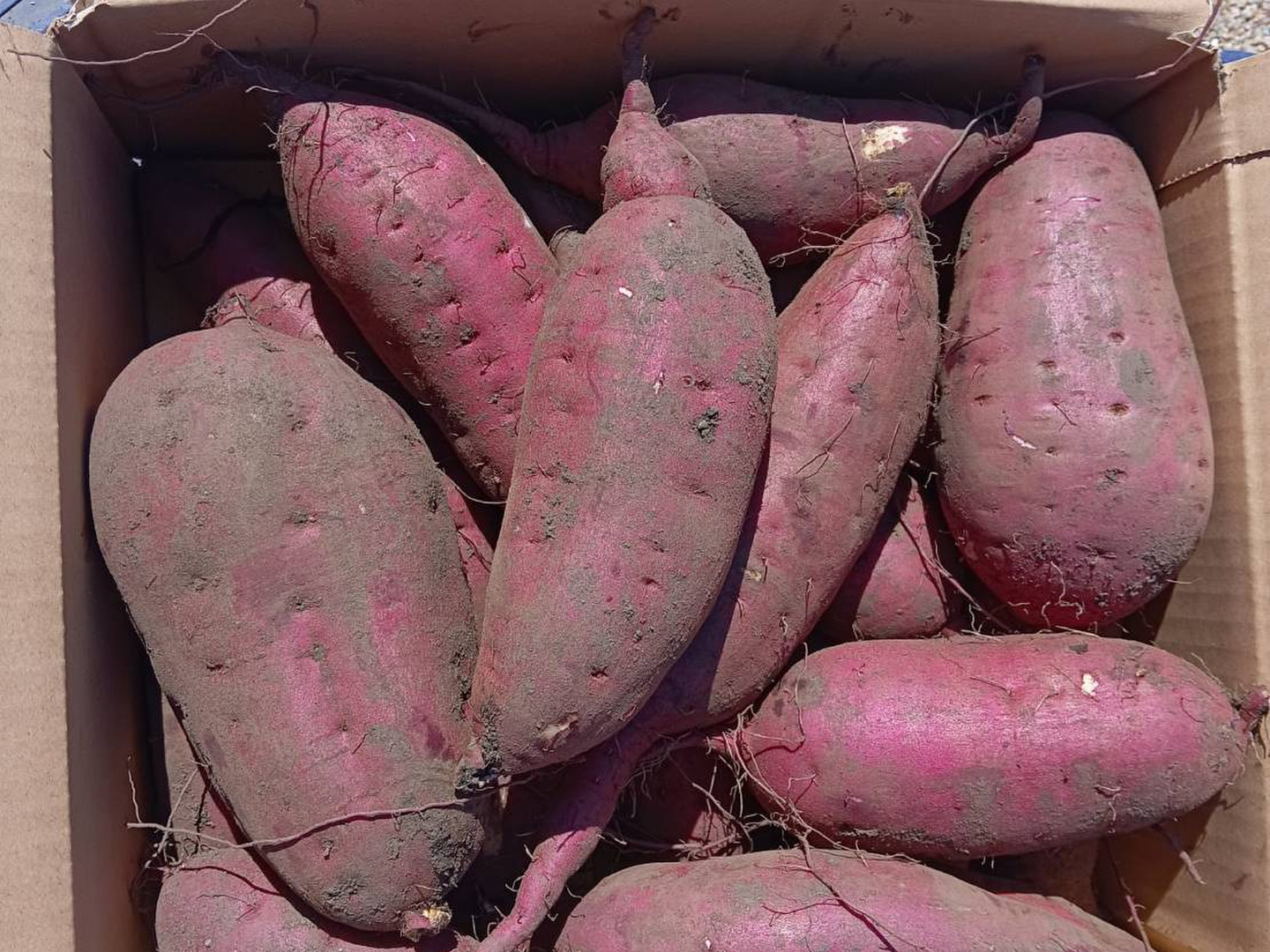 新鮮な紅はるかを5kg(サイズはバラバラ)でお届けします。土付きで、収穫したての風味をそのままお楽しみいただけます。