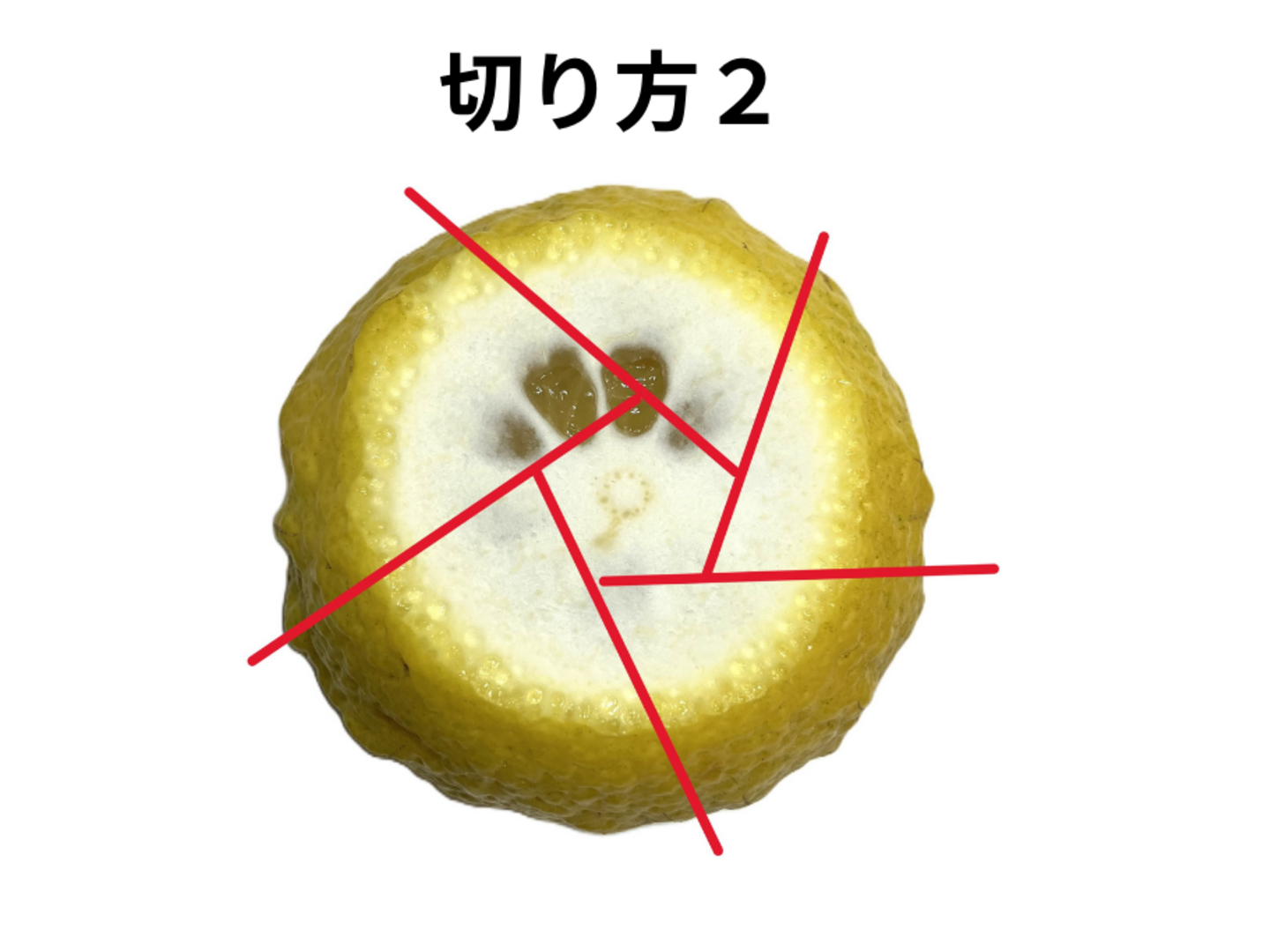 2 真ん中に種があるので、真ん中を残すように切り分けます。
