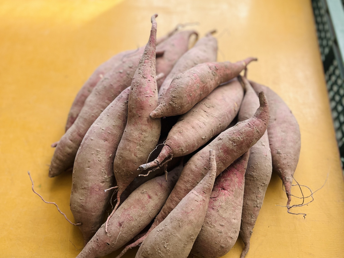 ホクホク系よりの少し水分もあり、色は白っぽい黄色。形は長細いものが多いのが特徴です。天ぷらや蒸し芋、焼き芋やさつま芋のポテトサラダ、色々な料理にどうぞ
