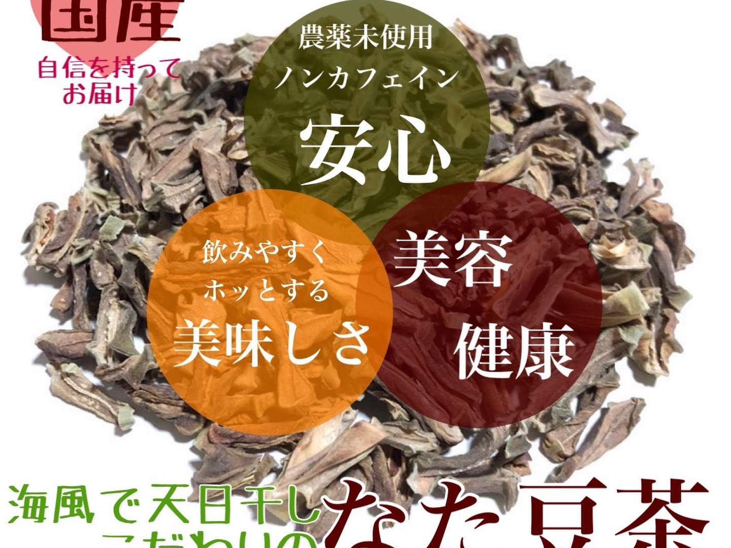 栽培期間中農薬を使わず,のびのび育てたなた豆をまるごと薄く切って,天日干し,そしてじっくり煎ることで製品になります.お茶の味は,香ばしく,ほんのりとした甘みがあります.発送するものは全て1か月以内に煎たものです!!