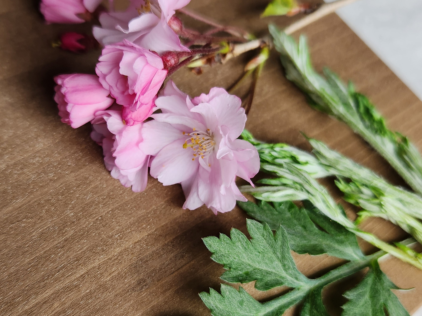 野山で摘んだヨモギと、自家製八重桜の花の塩漬けを使い、春にふさわしい色彩と味わいのお餅を作りました。