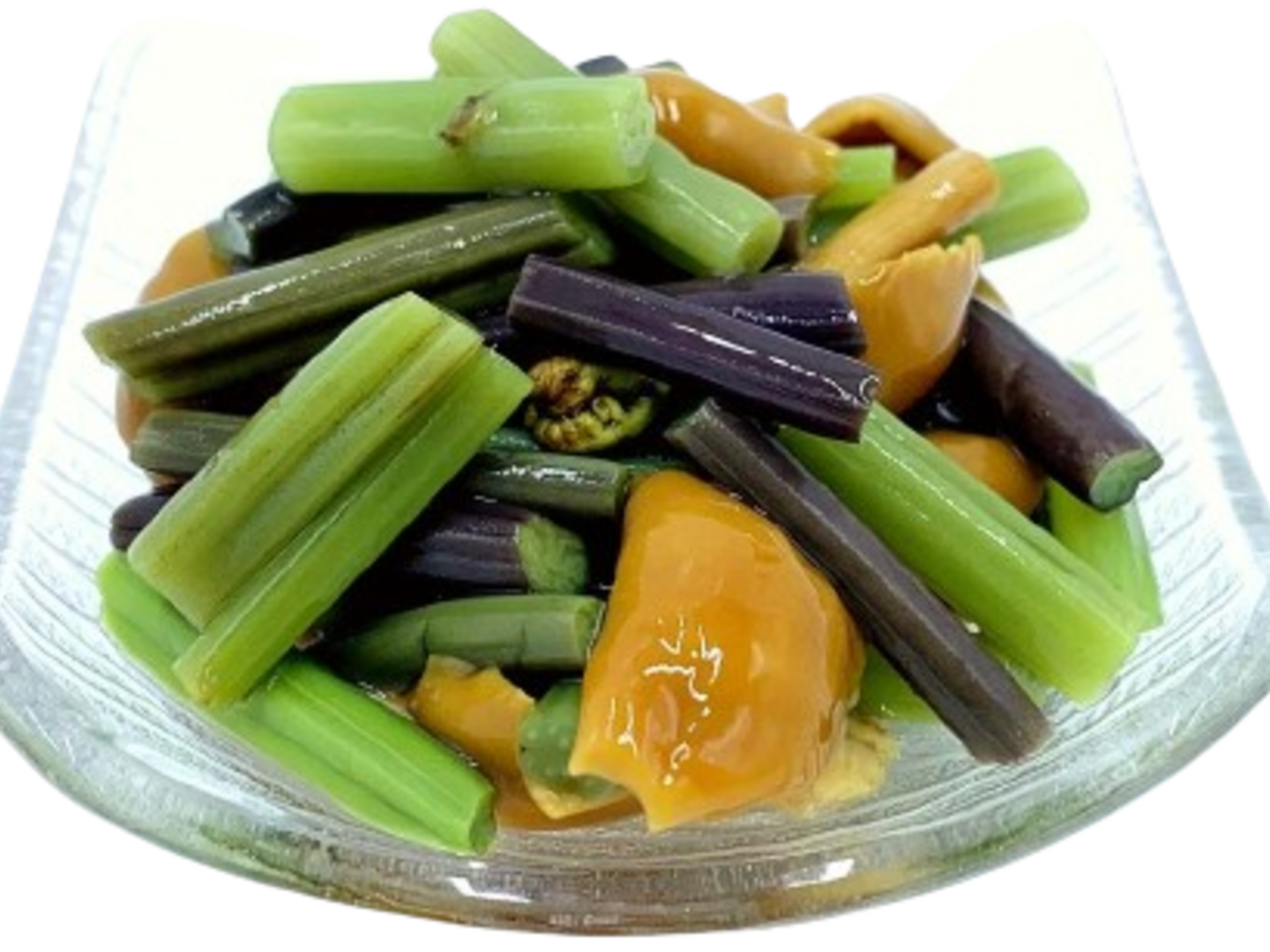- 4 山菜・きのこもいつでも食べられるよう水煮加工で提供しています