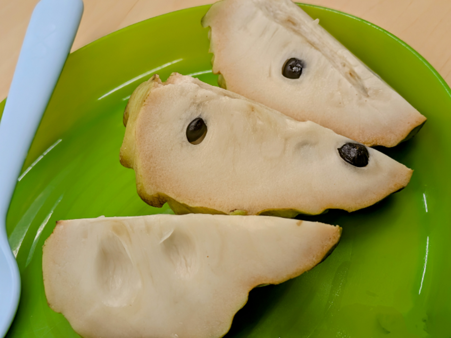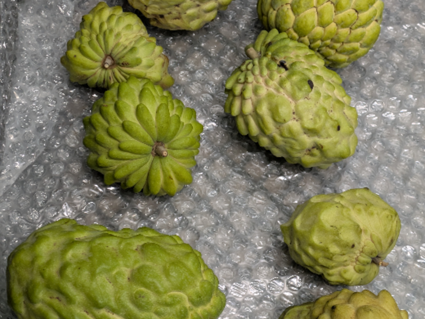 成育過程で傷が多め、皮剥きしづらいほど形がいびつ、未成熟などの訳ありアテモヤが入っております。