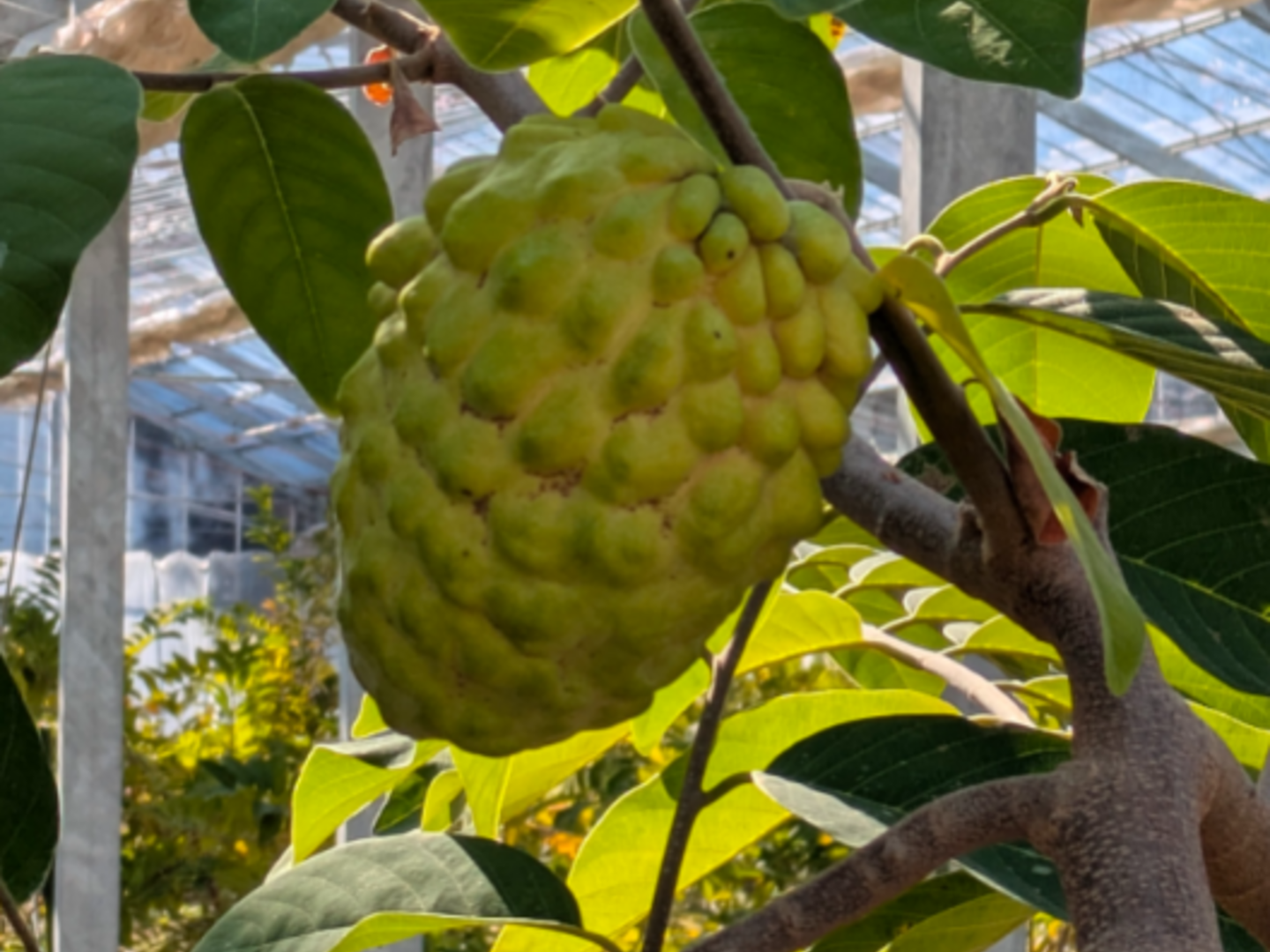 本品は、現地の台湾人からの助言と栽培指南を頂き、温度管理されたハウス内で栽培することでアテモヤが収穫できるようになりました。