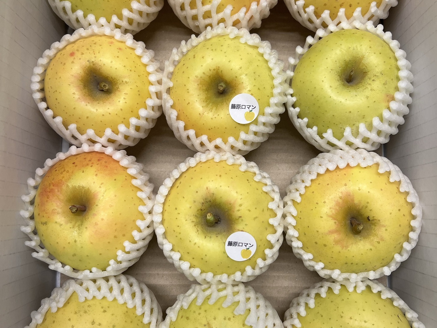 今回は小玉サイズの藤原ロマンのになります。藤原ロマンはスマートフレッシュ処理を行っていますので、シャキシャキの食感が楽しめます。