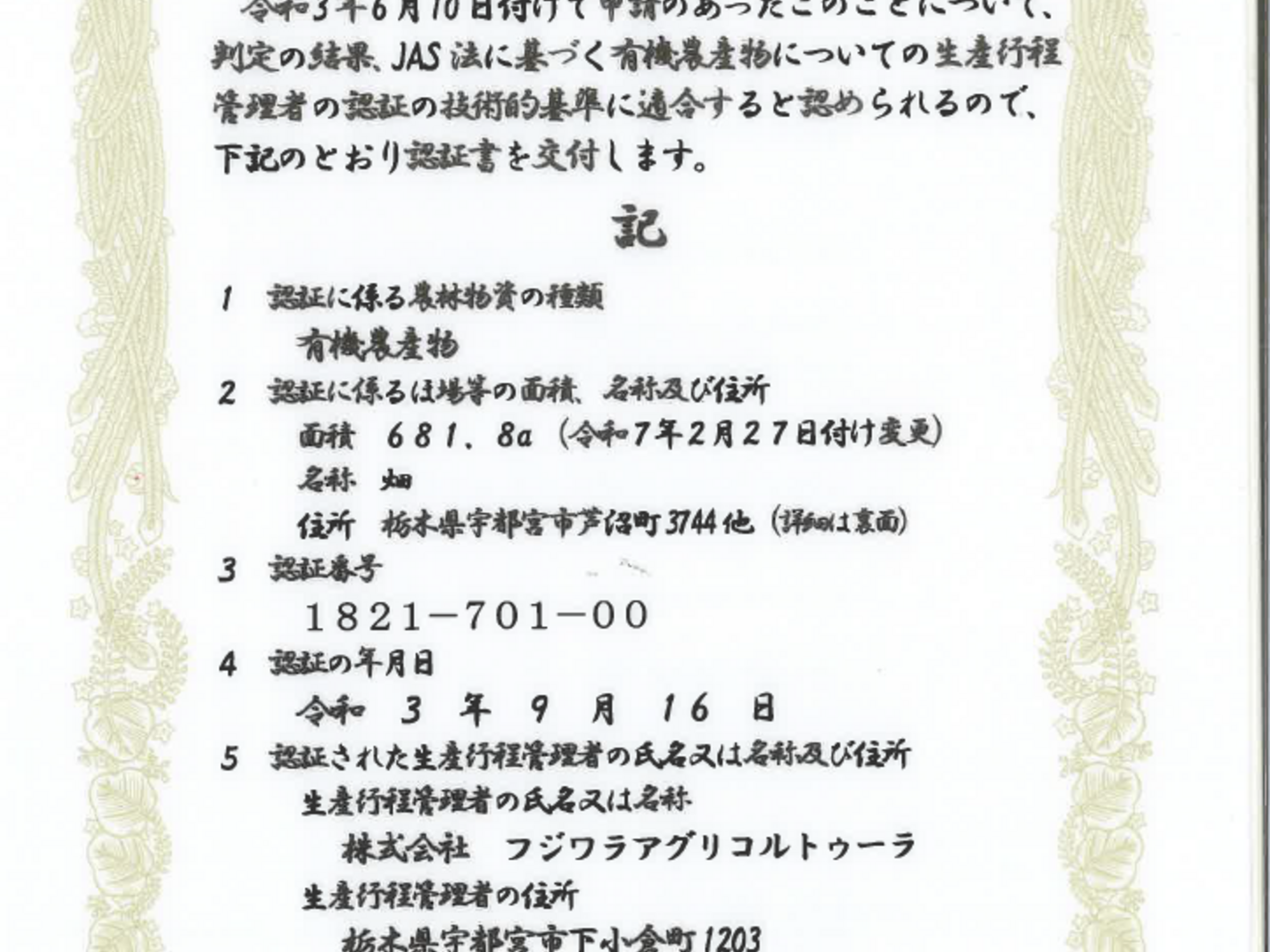 フジワラアグリコルトゥーラ
