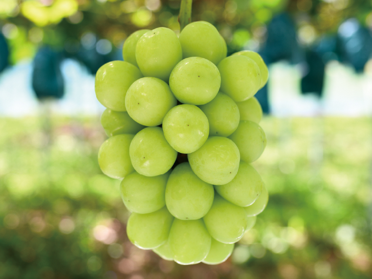 🍇シャインマスカットは、とても甘く、口の中でマスカットの心地よい香りが広がります。皮ごと食べられるので、人気のブドウです。