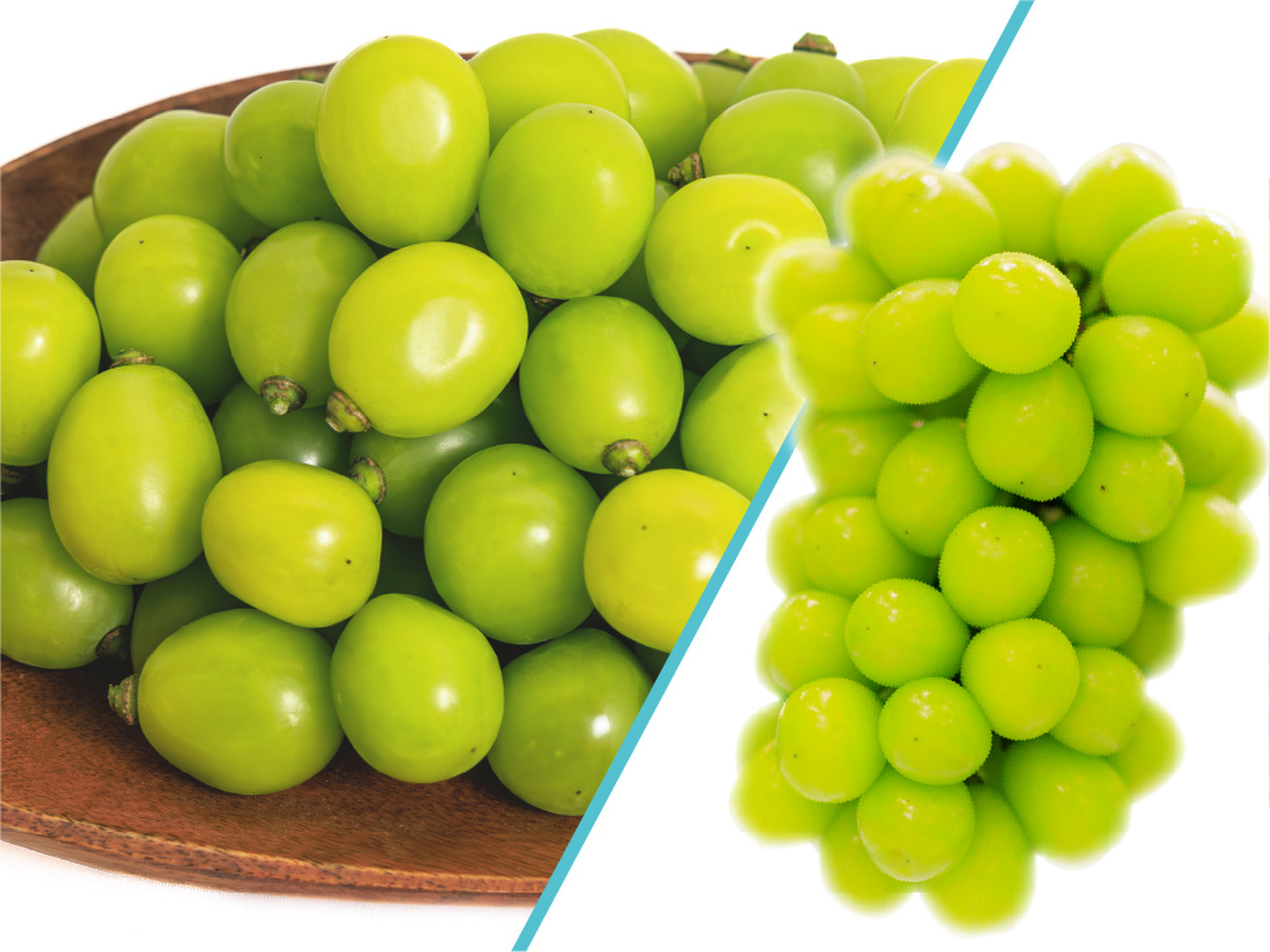 🍇シャインマスカットは、とても甘く、口の中でマスカットの心地よい香りが広がります。皮ごと食べられるので、人気のブドウです。