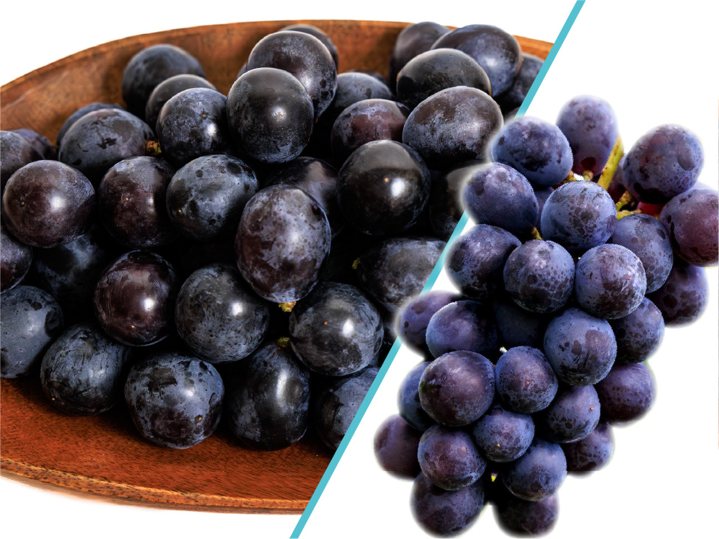 🍇BKシードレスは、黒ブドウで、味が濃厚で、雑味が少なく、とにかく甘いです。皮離れが良く、口に入れると果汁が広がり、子供が食べるのを止めないほどの美味しさです。巨峰とマスカットベーリーAを交配した品種で、ベーリーAの濃厚な味わいと巨峰の甘さを持っています。変わった名前ですが、BerryAのBとKyohouのKでBKです。