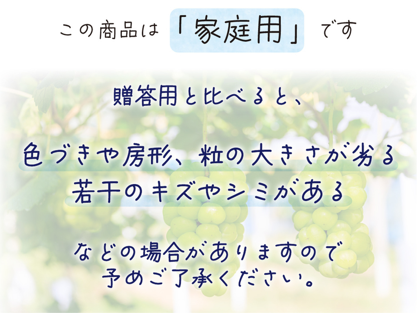 ※ご家庭用は、贈答用と比べると、粒が小さかったり、房の形や色付きが悪い場合があります。