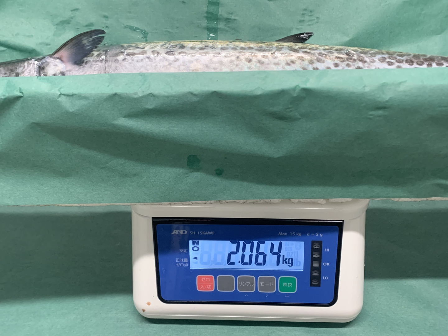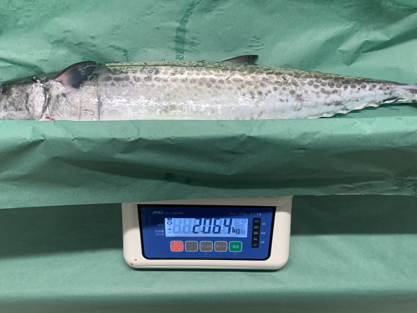 獲れたての「天然サワラ」を網から丁寧に外した後、船上にて血抜きを行い、直ぐに潮氷締め!