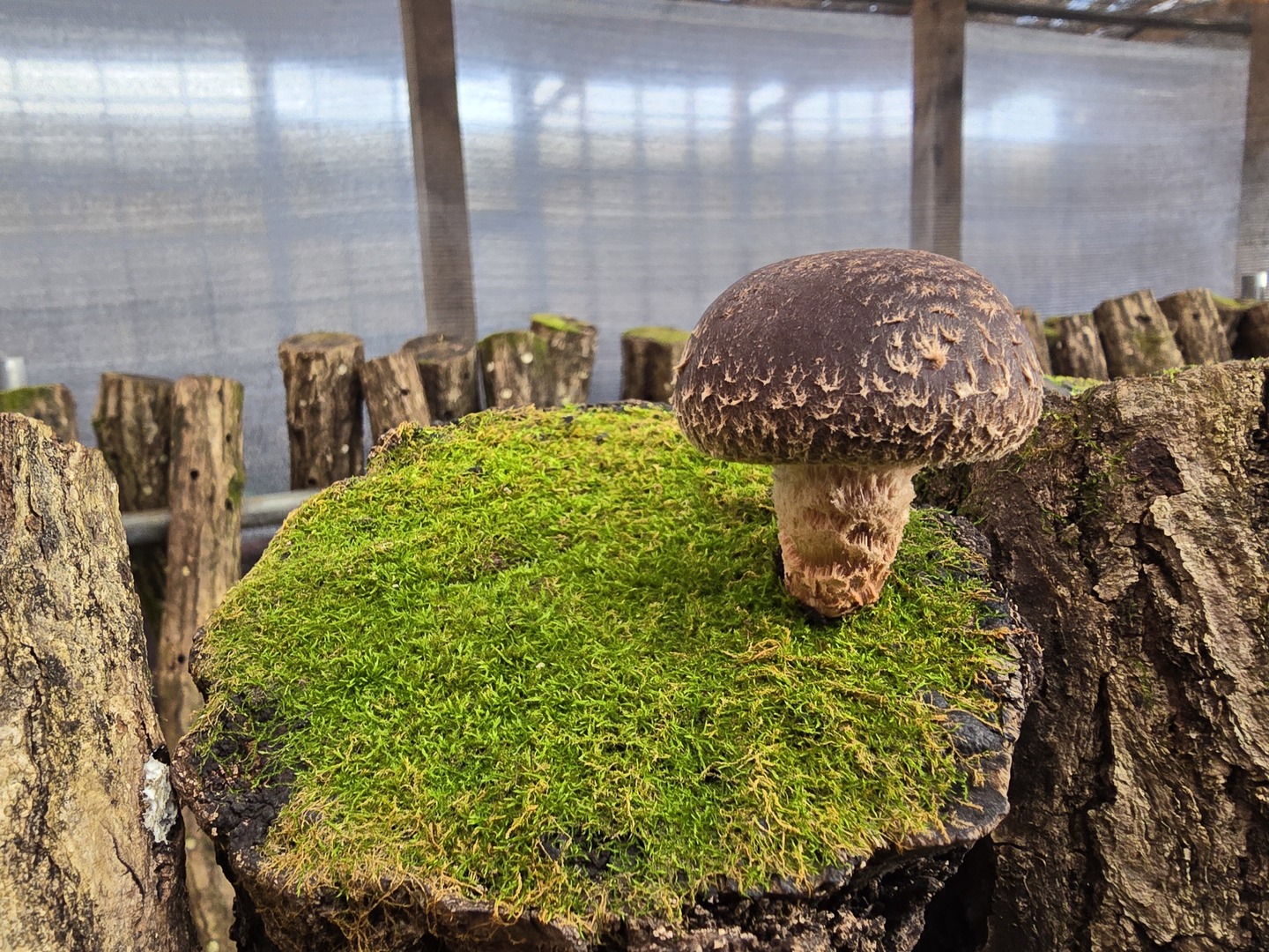 最近ではあまり見かけなくなった、原木で栽培されたしいたけ。