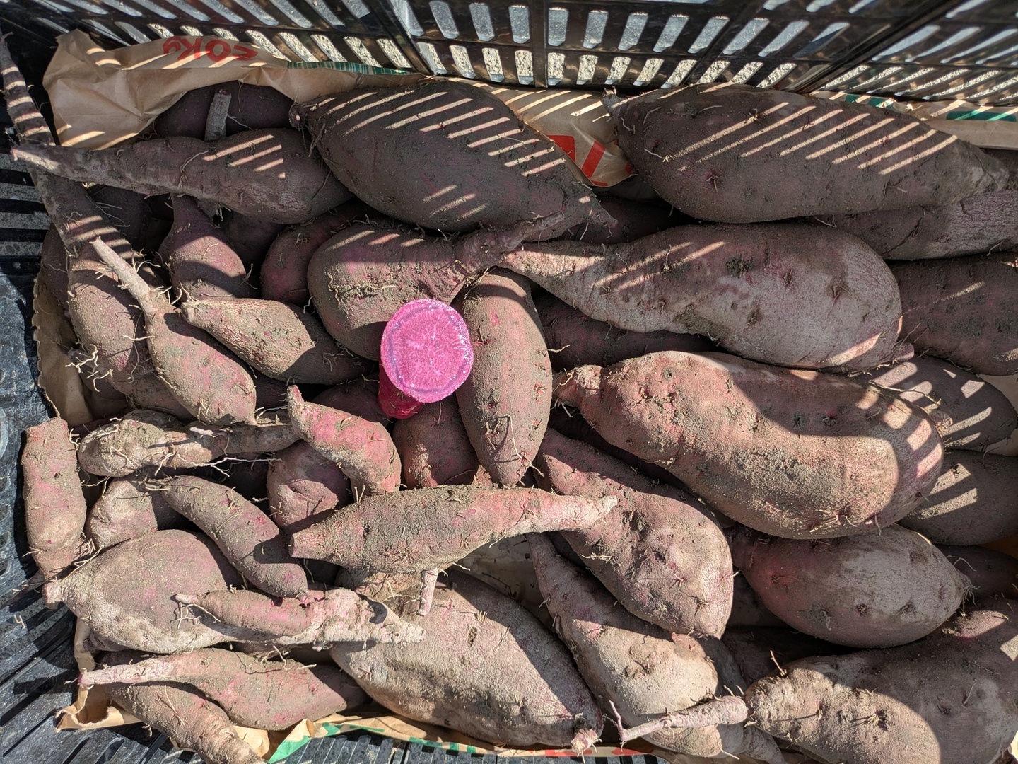 10月中旬より手掘りで収穫している掘りたての紫芋です。