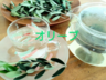 自然栽培のオリーブリーフ、オリーブの生葉です。そのままドライにすると、くるっと丸まった感じになります。