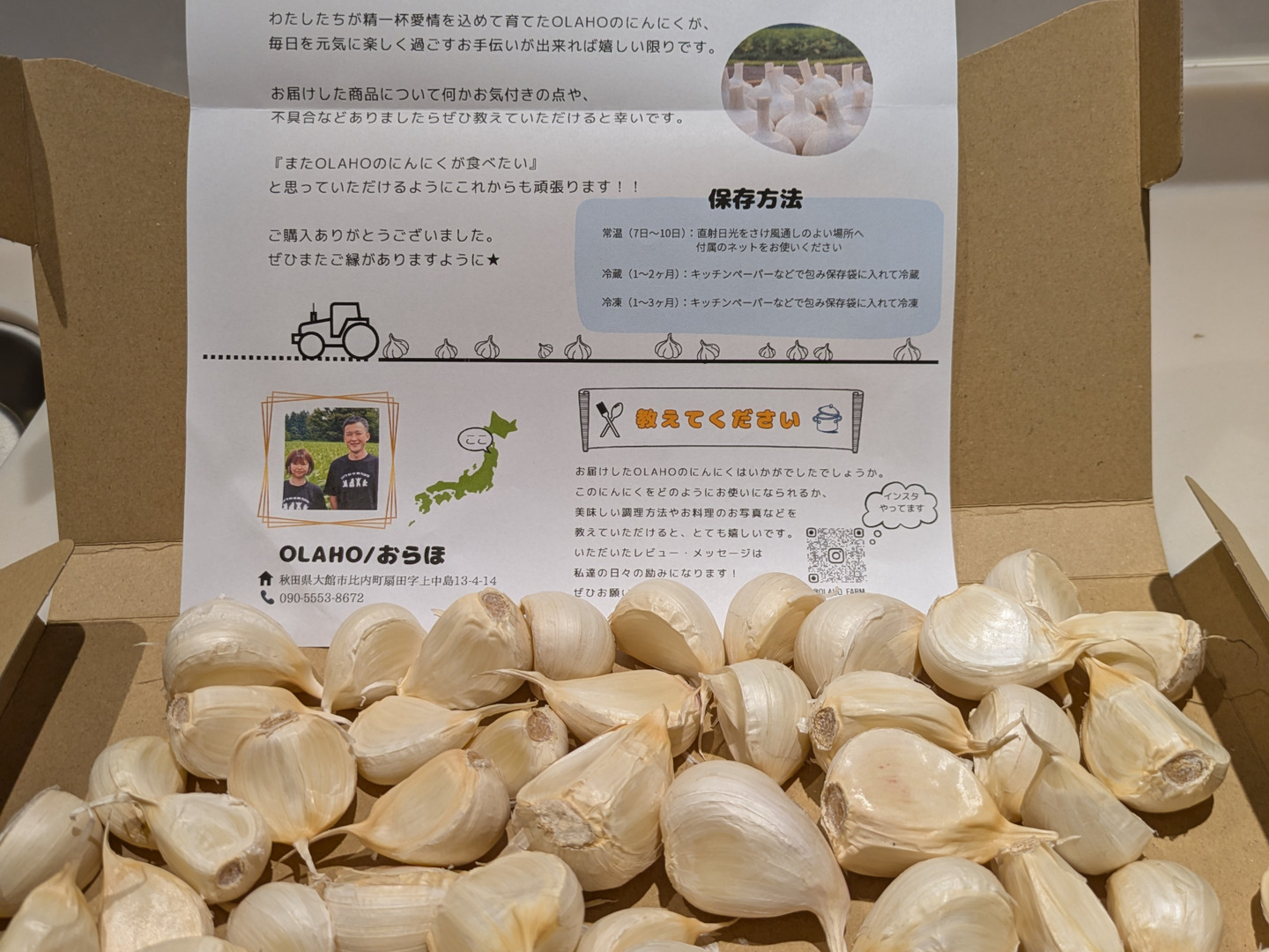 しっかりと乾燥させたOLAHO(おらほ)のにんにく『白玉王』を