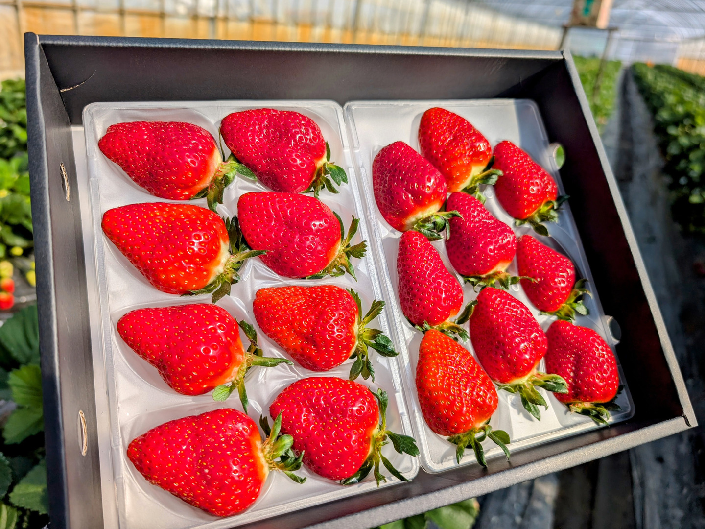 当農園では完熟したイチゴのみを収穫、発送しています。そのため傷みにくい容器を使用しておりますが、多少のスレなどが起きる場合がございます。丁寧に梱包して発送しておりますが、ご理解をお願い申し上げます。