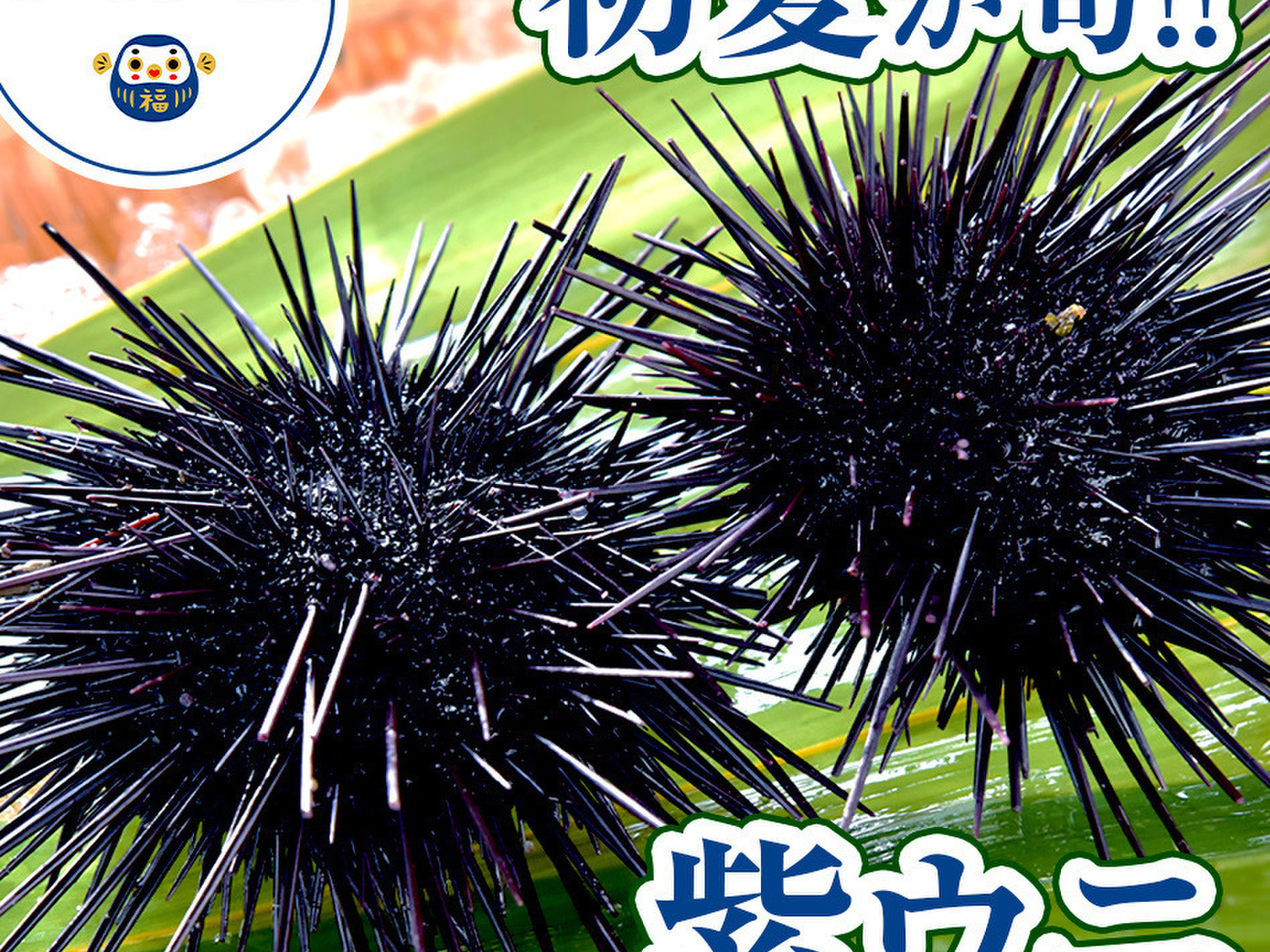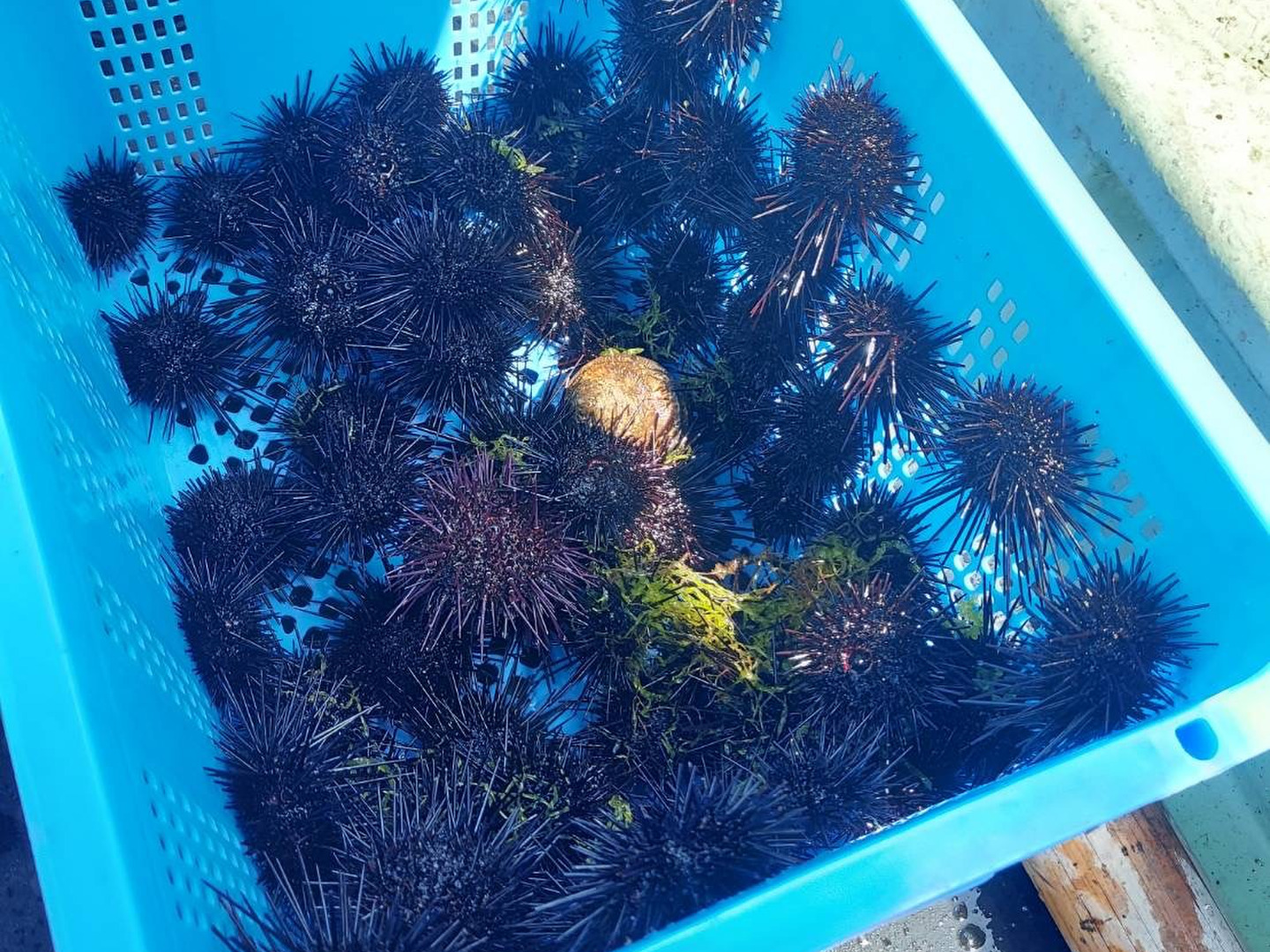 初夏に旬を迎えるムラサキウニを素潜りで獲ったものです。