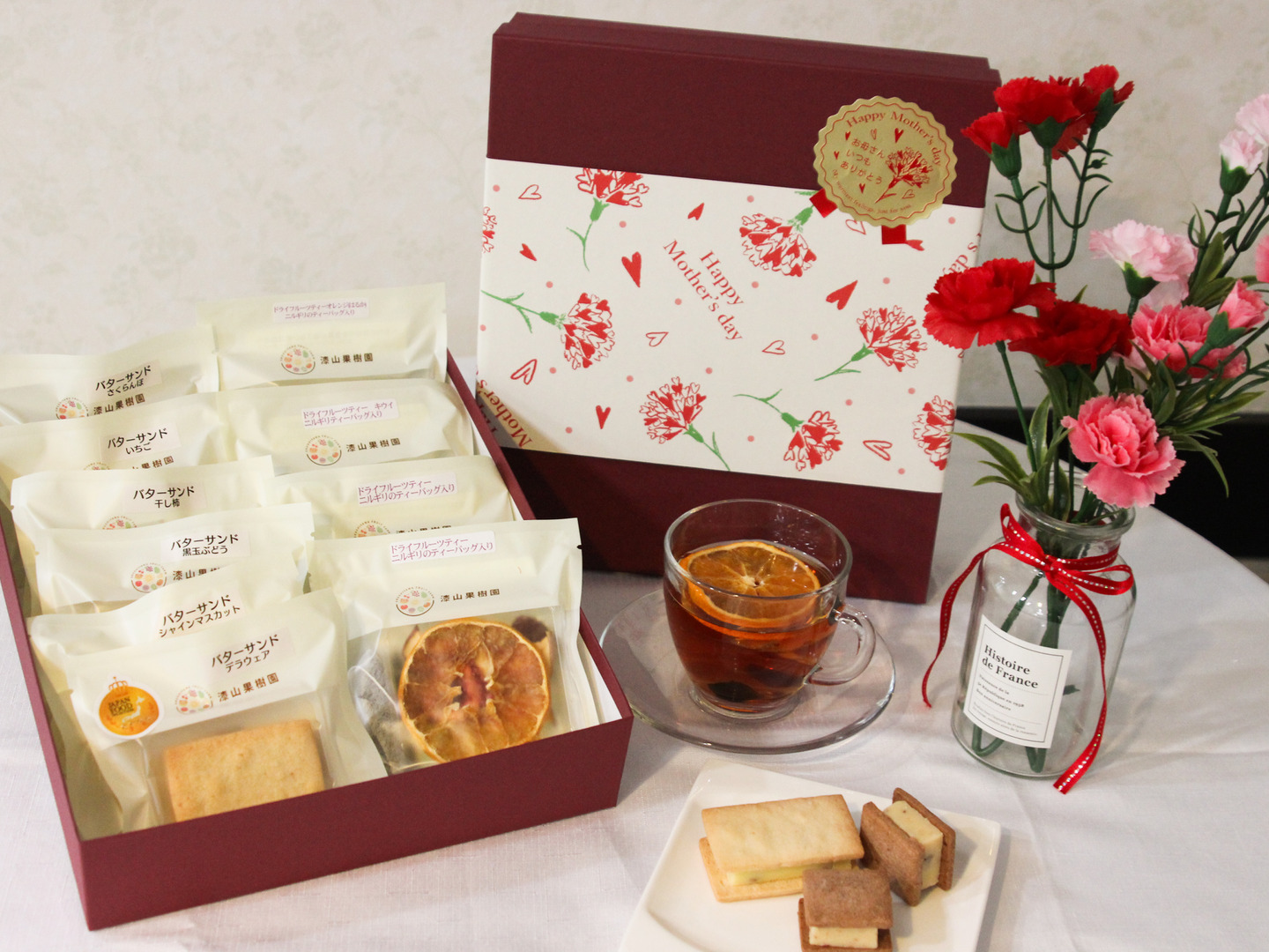 【母の日ギフト】遅れてごめんね💦母の日用ラッピング限定10箱★果樹園生まれのバターサンド&ドライフルーツティーの詰め合わせ