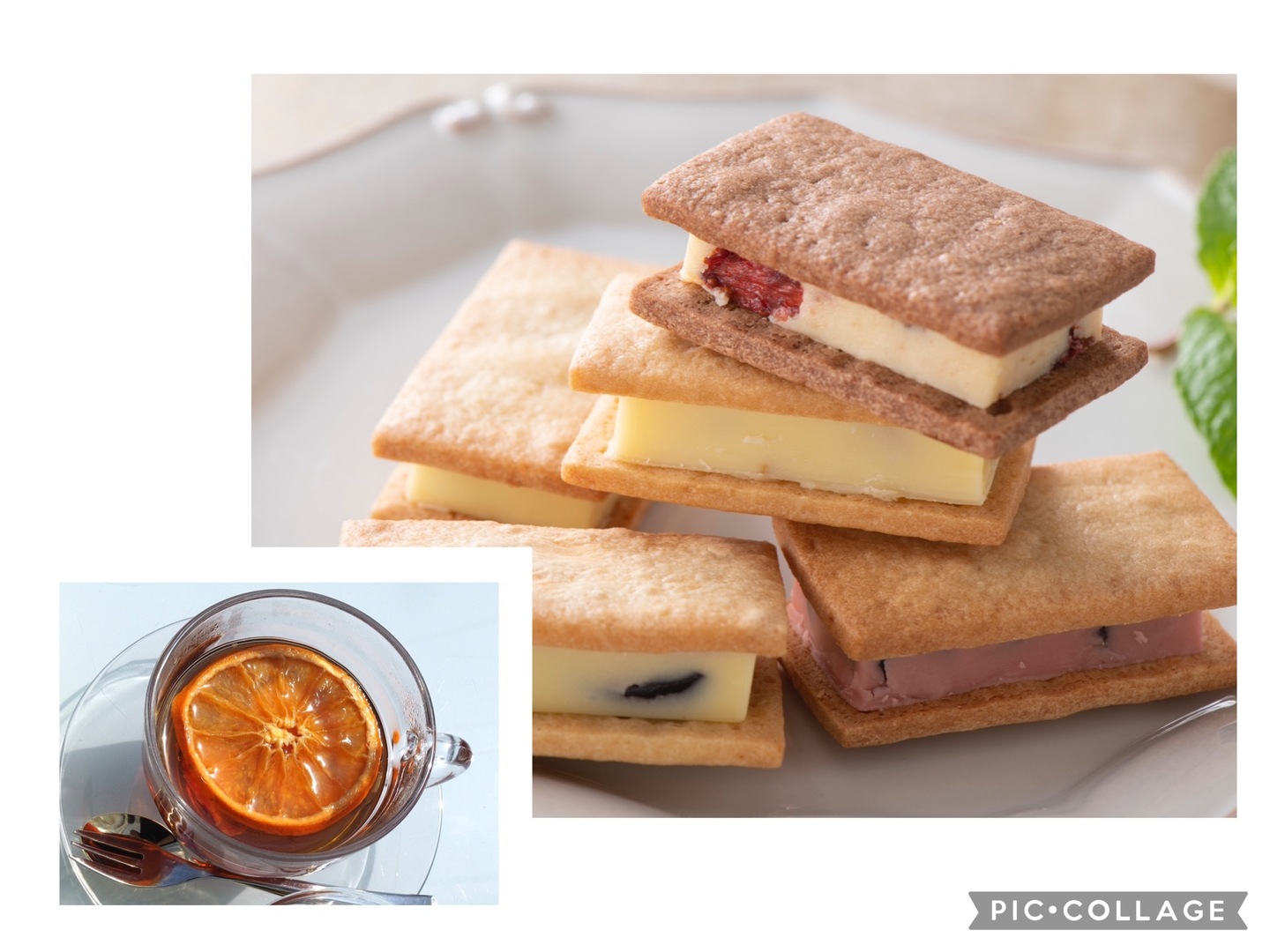果樹園生まれのバターサンドとニルギリのティーバック入りドライフルーツティーで