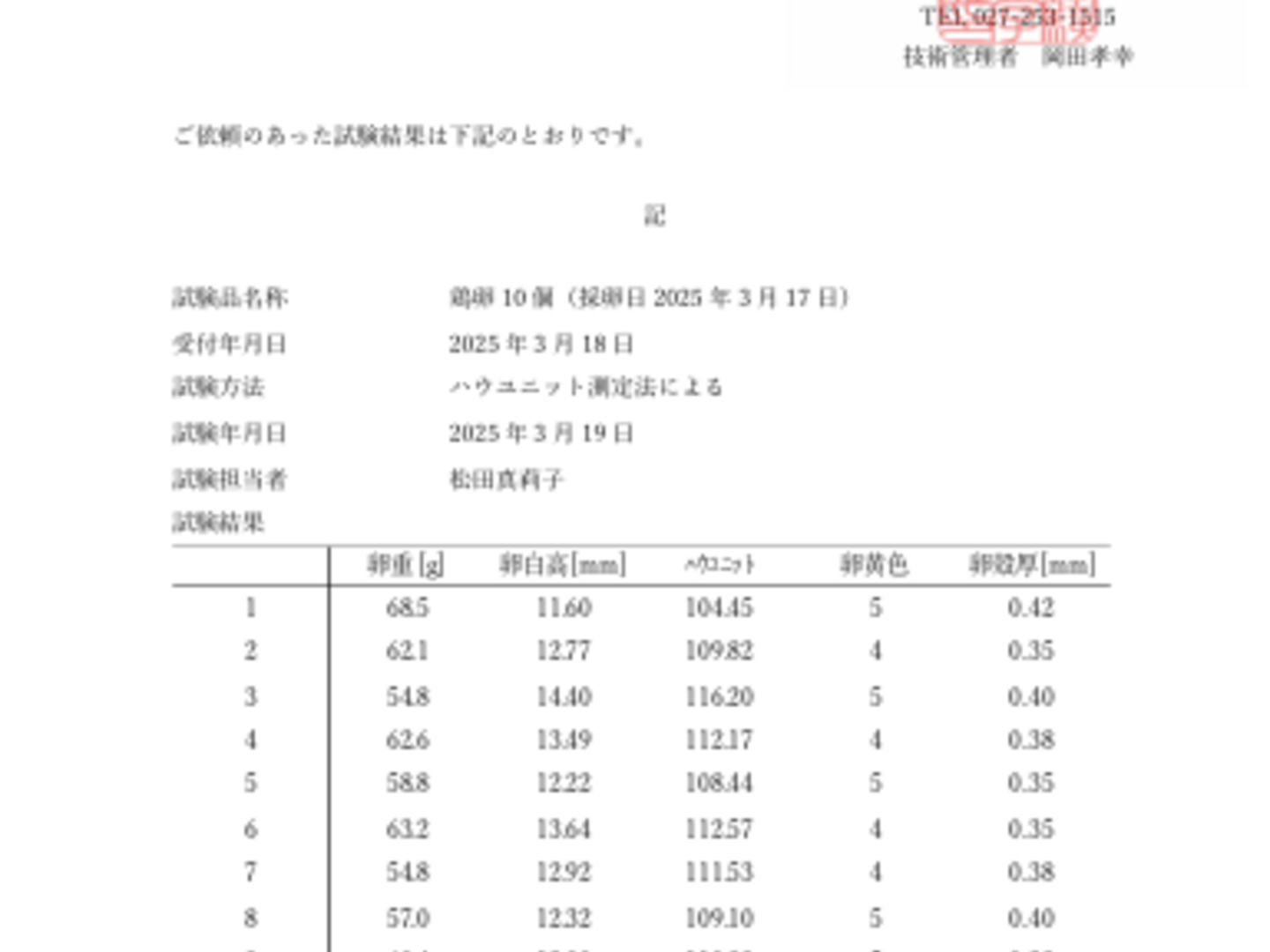『卵の鮮度を表す ‟ハウユニット値 高値110!” 品質が良く新鮮なたまご❣』