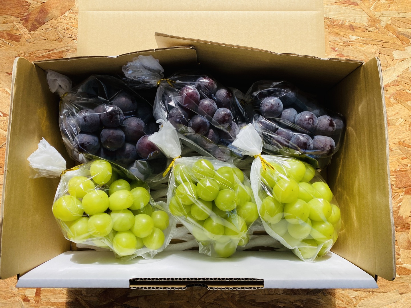 その時期に収穫のブドウを2~3品種詰め合わせで発送します。