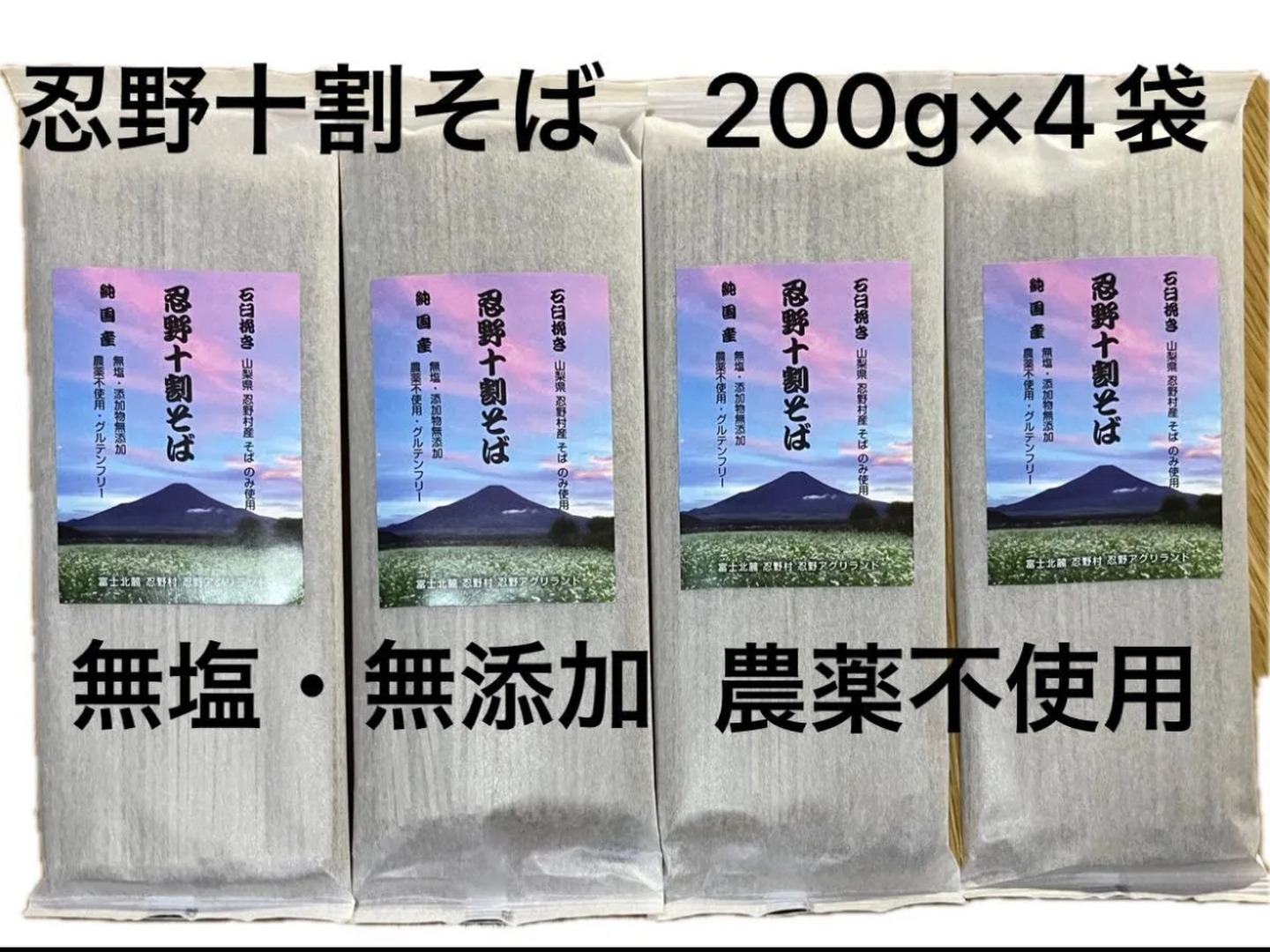 富士 忍野十割そば 乾麺200g ×4袋 計800g 農薬不使用•無添加 石臼挽き★純国産★ 国内産原材料のみ使用・国内製造(長野県)無塩・グルテンフリー★ 発送メール便★ゆうパケット・クリックポスト