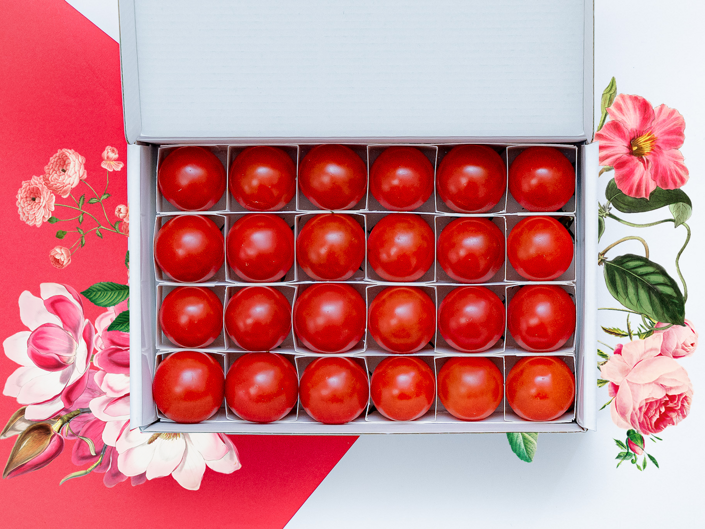 この宝石ルビーのようなフルーツトマトの化粧箱はいかがでしょうか?