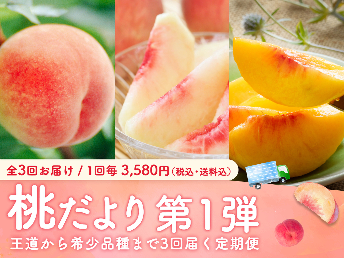 全国各地から厳選した美味しい桃を、6月・7月・8月に各1回1種類、お届けする定期便サービスです。