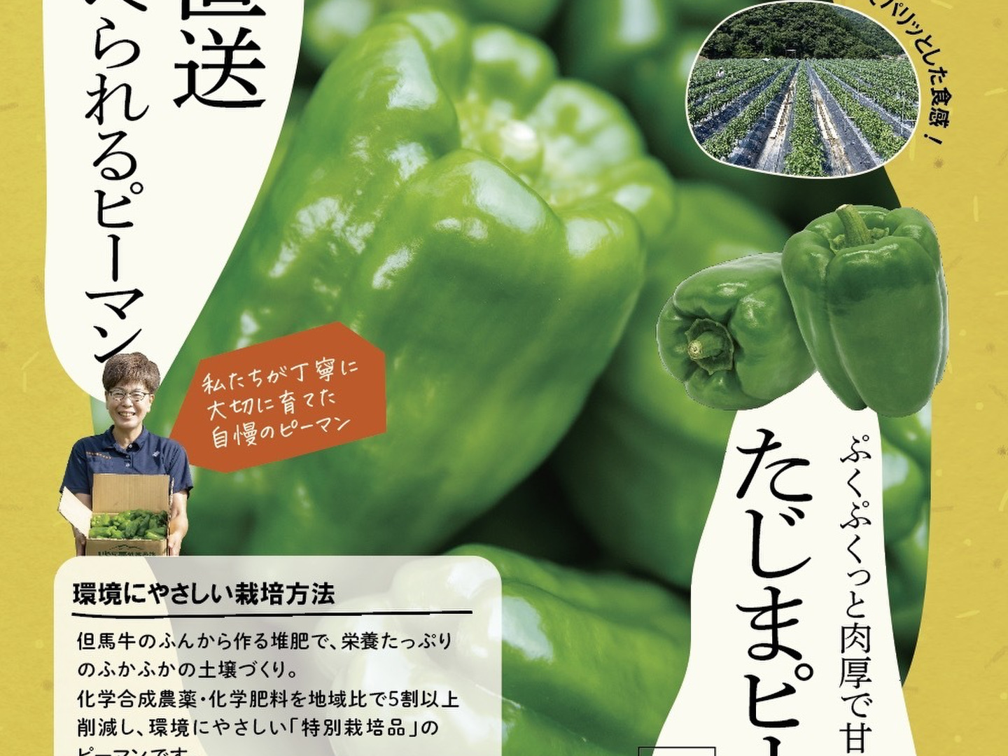弊社のピーマンは、「特別栽培品」の「たじまピーマン」としてお取り扱いいただいております。