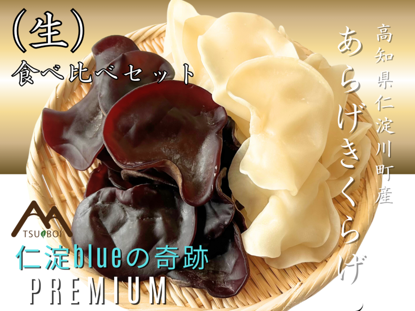 高知県仁淀川町産『生きくらげ』食べ比べセット|奇跡の水で育てた”純白の贅沢”「白あらげきくらげ400g」|「黒あらげきくらげ500g」季節限定|数量限定でお届け|