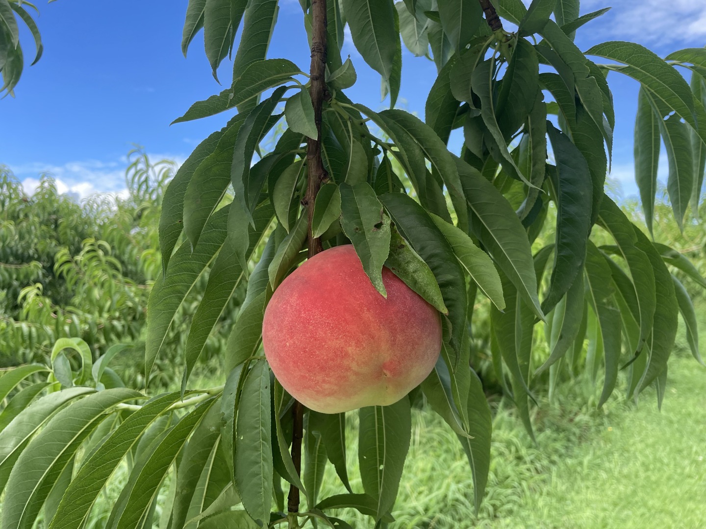 美桃紅は「川中島白桃」と「ゆうぞら」の交配品種で、川中島白桃とほぼ同じお盆頃に収穫期を迎えます。