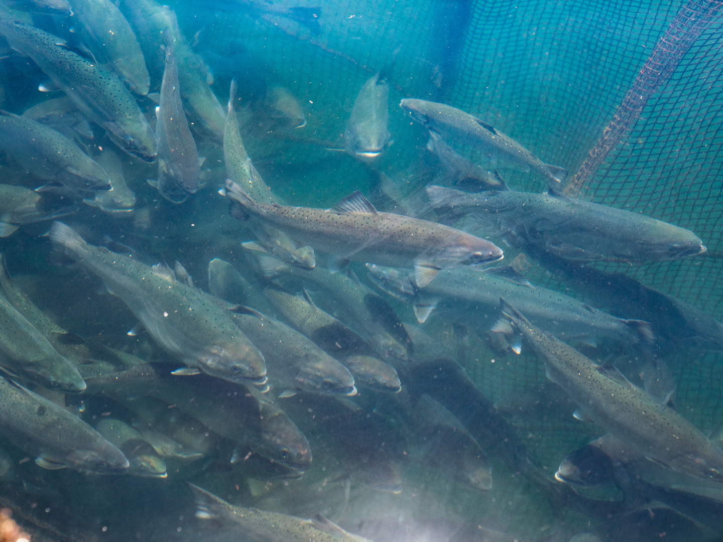 本桜鱒は淡水で生まれ、海の生け簀で大きく育ち、再び淡水で育成しています。