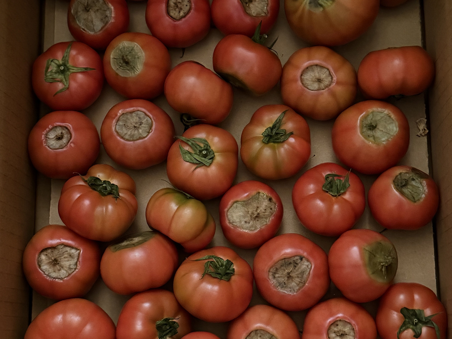 ※平たいみかん箱に1段で入るだけ詰めています。時期によりトマトのサイズ感が変わるため、2kg前後だと思いますがトマトのサイズ次第なので確約出来ません。