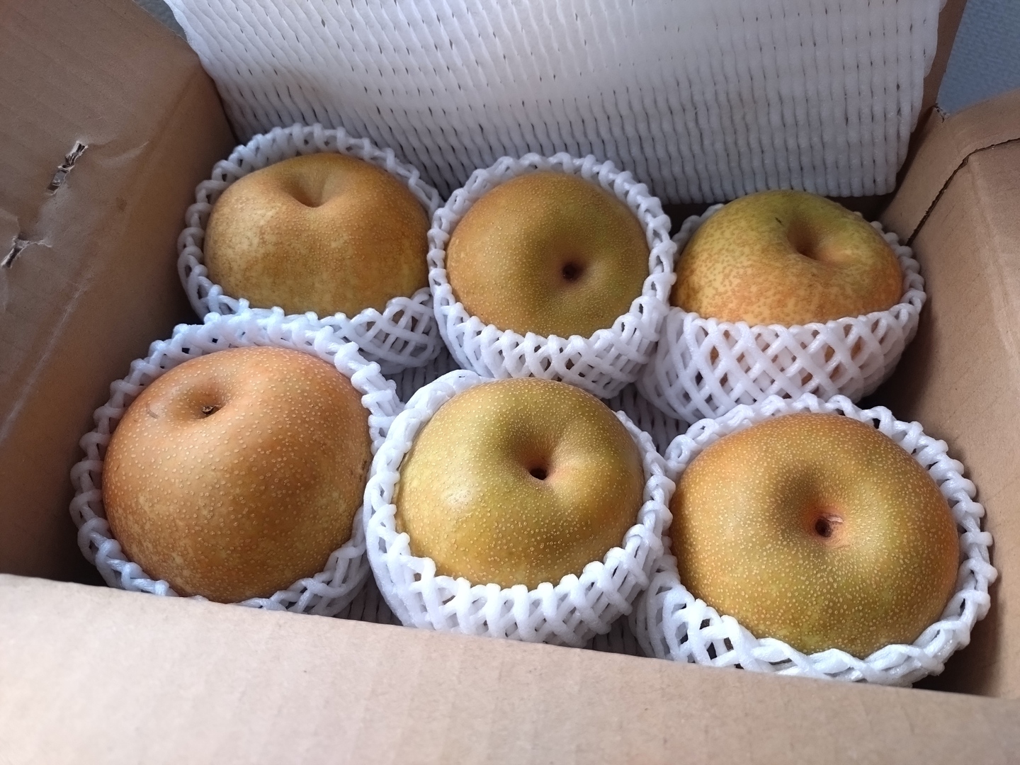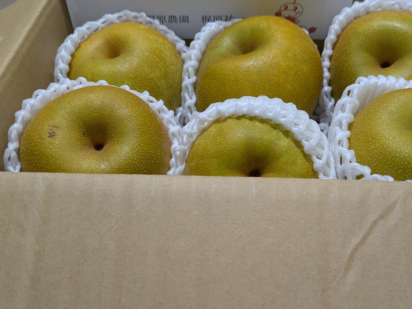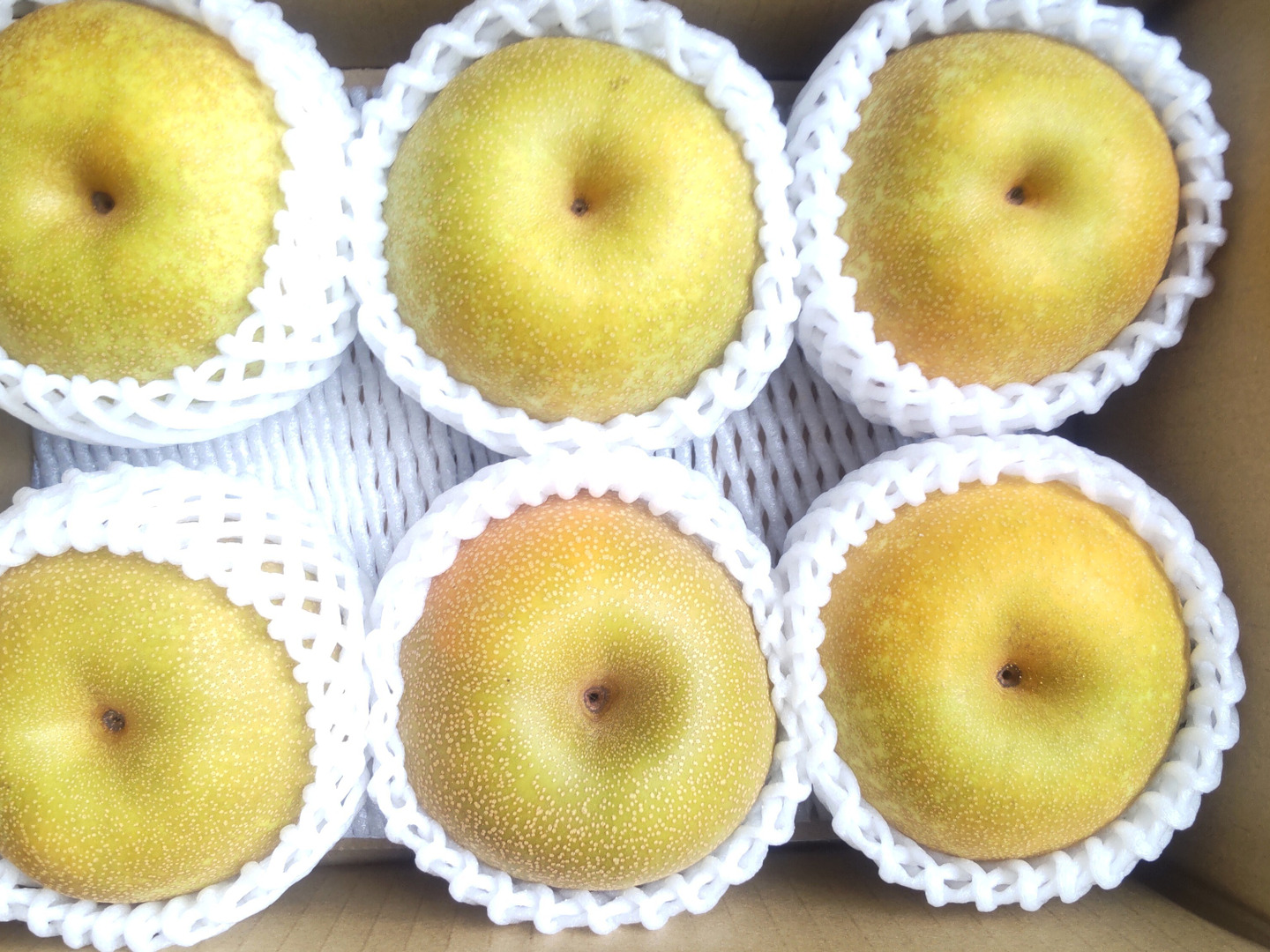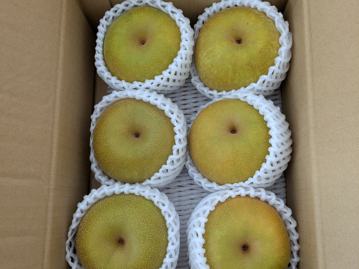 昼間は暑く夜は涼しく、この気温差が梨の甘さを引き出します。海藻エキスを複数回投与することで、更にコクと旨味のある梨に仕上がります。