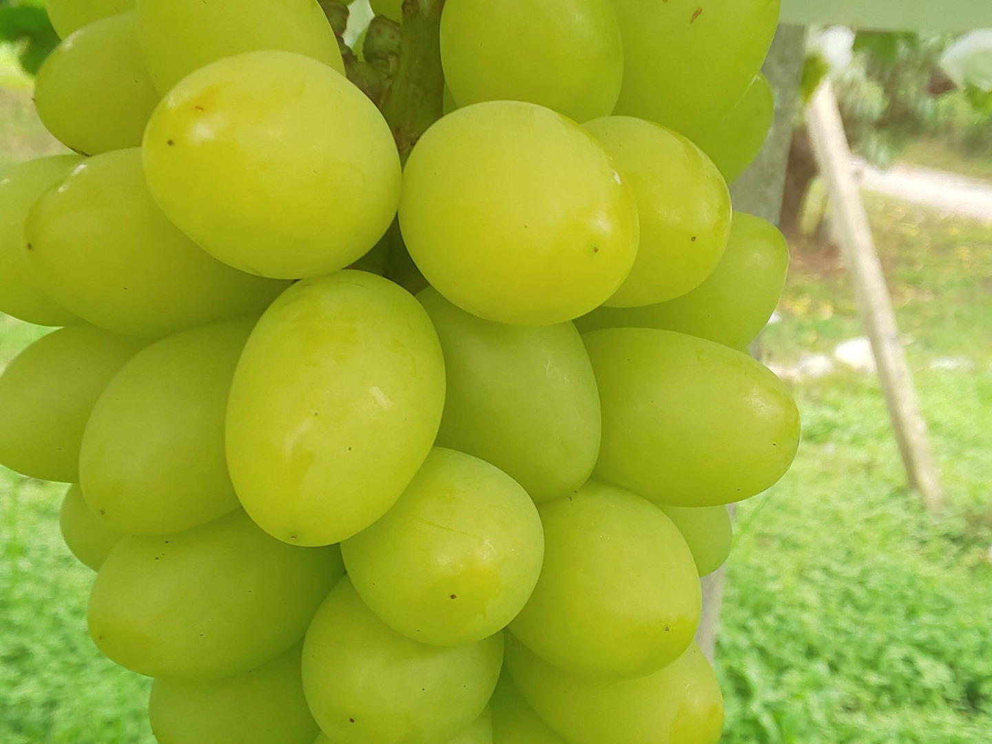 シャインマスカットと比べ粒の形状はやや細長く、パリッとした食感があり、コクのある甘さを楽しめます。