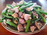 ・しょうが焼きのたれを使って、豚こまとニンニク芽の炒め
