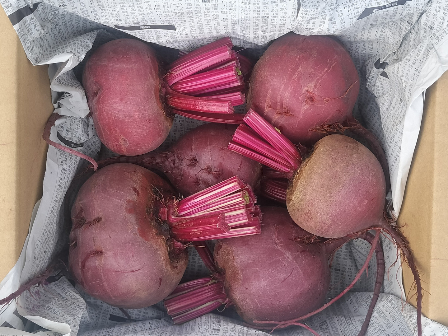 商品について あわせ買い対象 同生産者の別の「あわせ買い対象」商品と一緒にご注文いただくと、送料をまとめてお届けできる場合があります。 内容 千葉県産ビーツ 重量・容量 約1.8kg 発送 ヤマト運輸(食べチョク特別送料) 送料 ¥ 常温便 + ¥ 0 複数注文すると送料がまとまります。 種別 野菜 ビーツ デトロイト・ダークレッド 産地 千葉県 農薬化学肥料不使用 野菜 家庭用 動物性堆肥不使用 デトロイト・ダークレッド 千葉県x野菜 千葉県xビーツ 千葉県xデトロイト・ダークレッド 商品説明 閲覧頂き、ありがとうございます!ビーツは甜菜糖の原料であるテンサイの仲間で、適度な甘さがあります。また、食べる輸血と言われるほど栄養豊富で、赤い色素であるベタシアニンというポリフェノールの一種や、カリウム、鉄、葉酸などが多く含まれています。サラダとして薄切りで生のままでも美味しいですが、火を通すと甘みが強くなるので、スープ(ボルシチが有名)やカレー、温野菜などに調理すると、ビーツの美味しさがより味わえます。注文後に収穫、水洗いをして新鮮なまま発送致します。お届けビーツのサイズは大小様々で、5〜10個に内容数になります。ダンボールと新聞紙で梱包して、梱包材込で2kg、ビーツ本品約1.8kgでのお届けになります。 もっと見る この商品のことをお友達にもシェアしませんか ポスト シェア