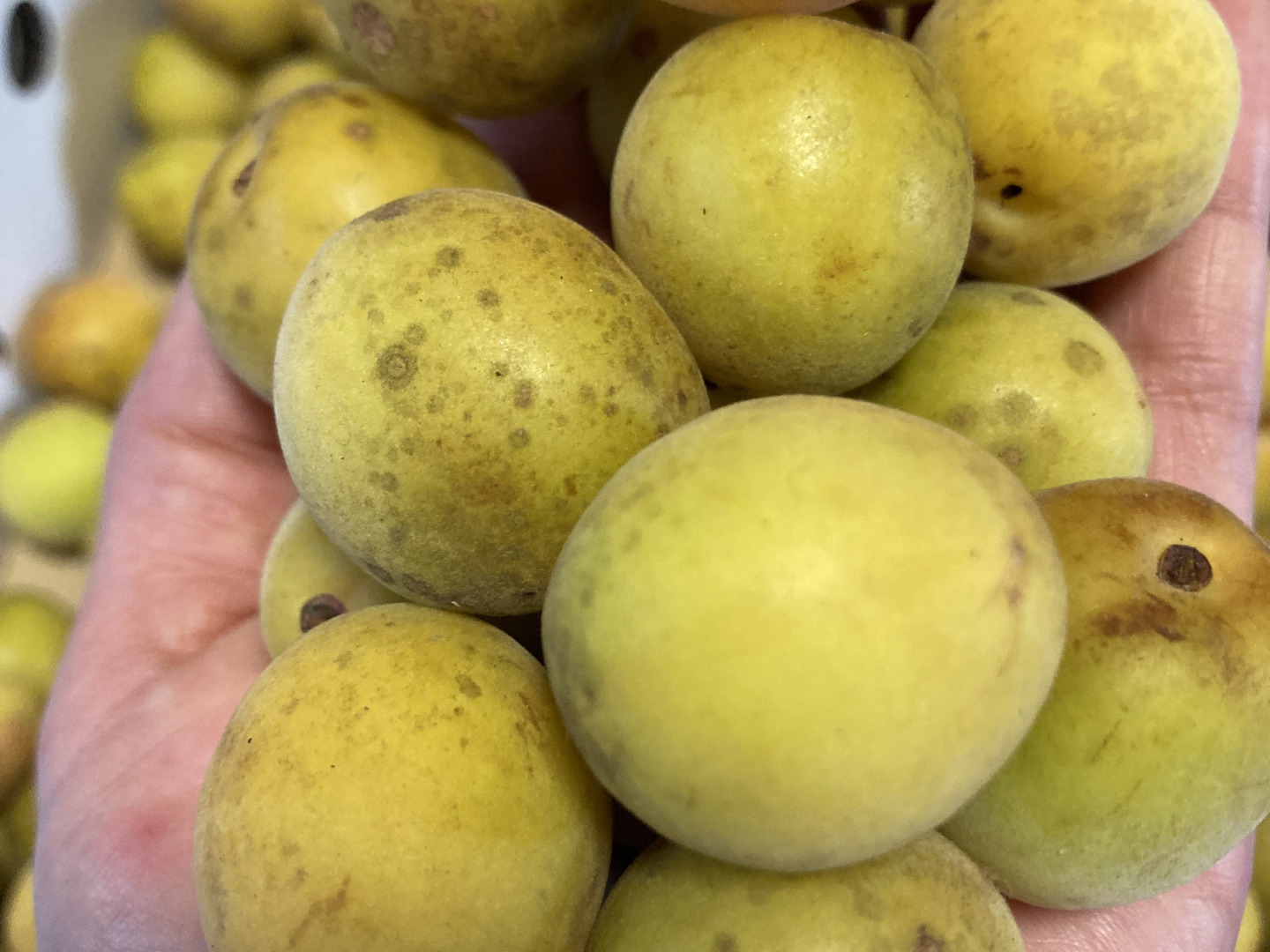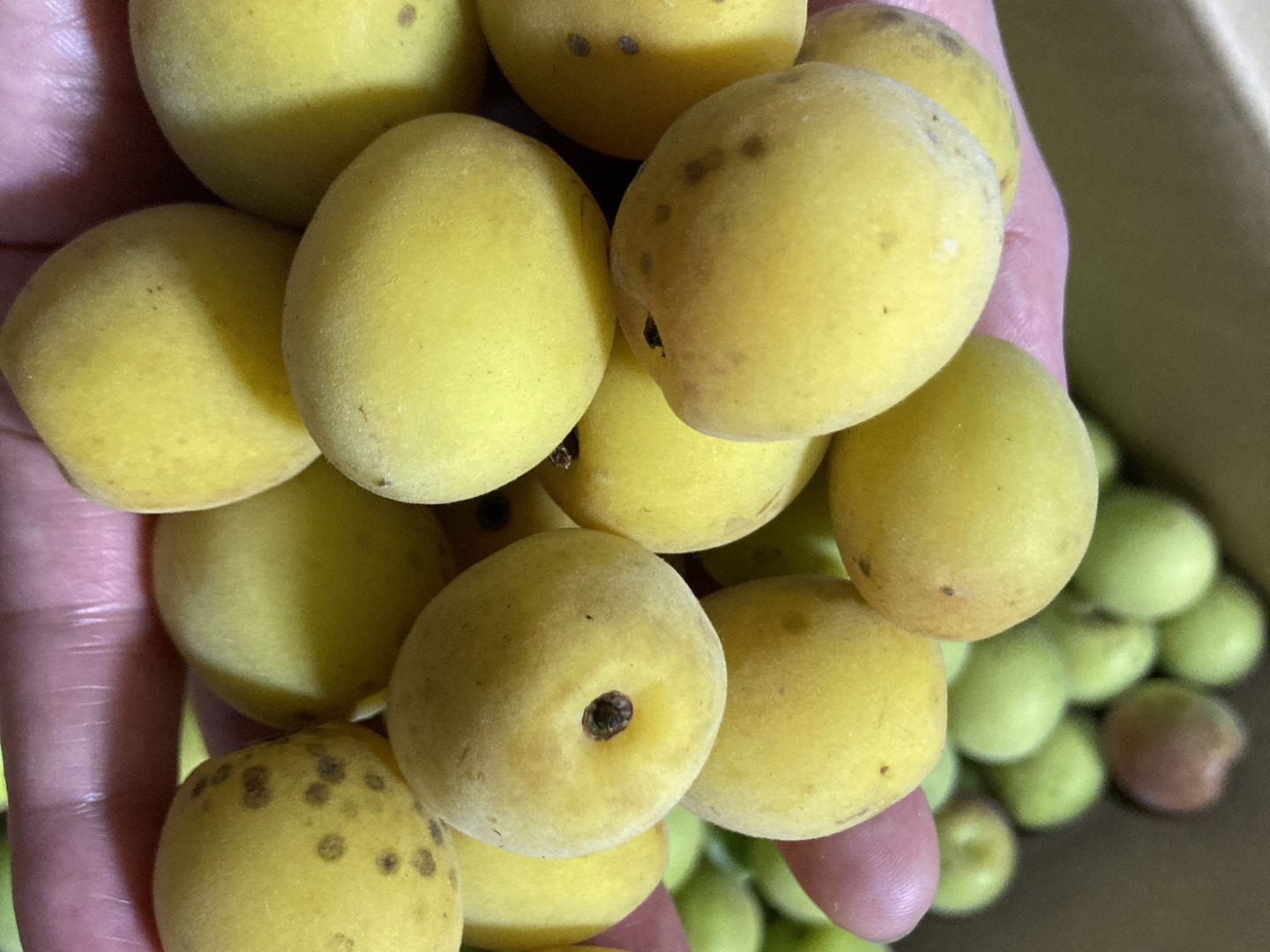 高知県の梅です。木でほぼ完熟、お家に着く頃にはもっと黄色く🟡完熟です。梅干し、ジュースなんかに如何でしょう‼️^_^